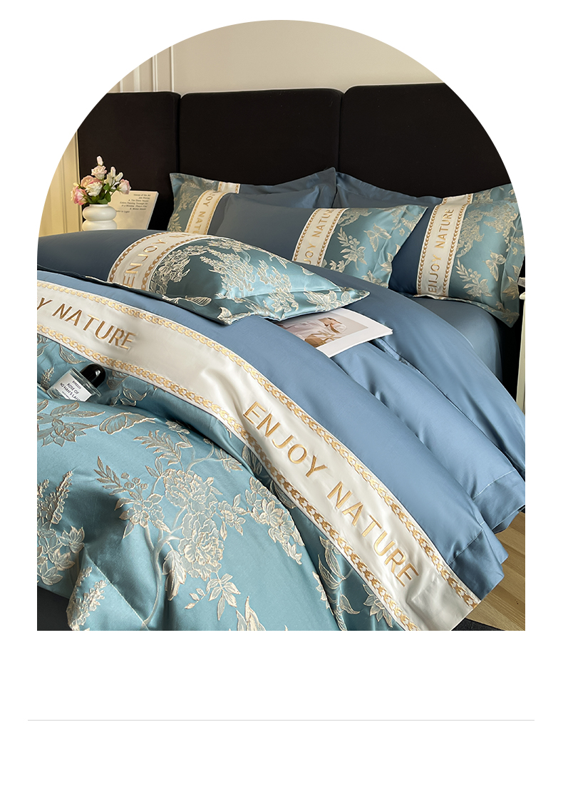 (总)博纳家纺 2025新款镂空大宽边拼角高级简奢款亲肤棉四件套-山水提花,繁星蓝,粉玉,高级灰,香槟,象牙白