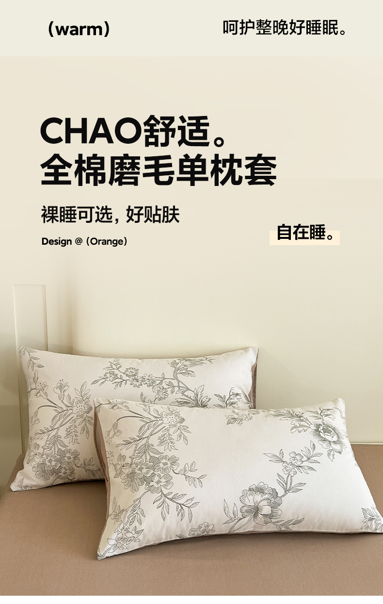 商品名称:盛馨家纺 2025新款秋冬百分百全棉纯棉磨毛单枕套枕套单件 暖阳