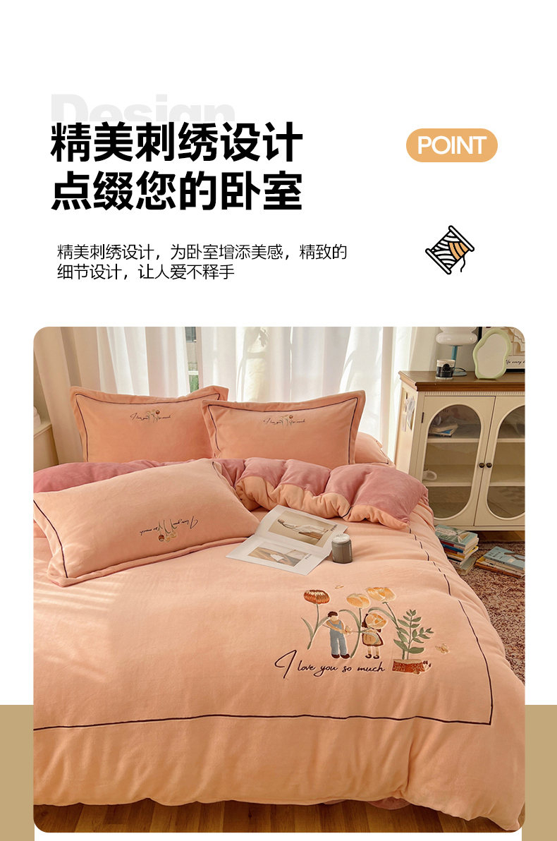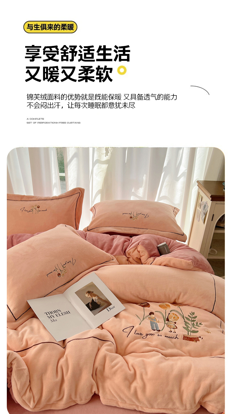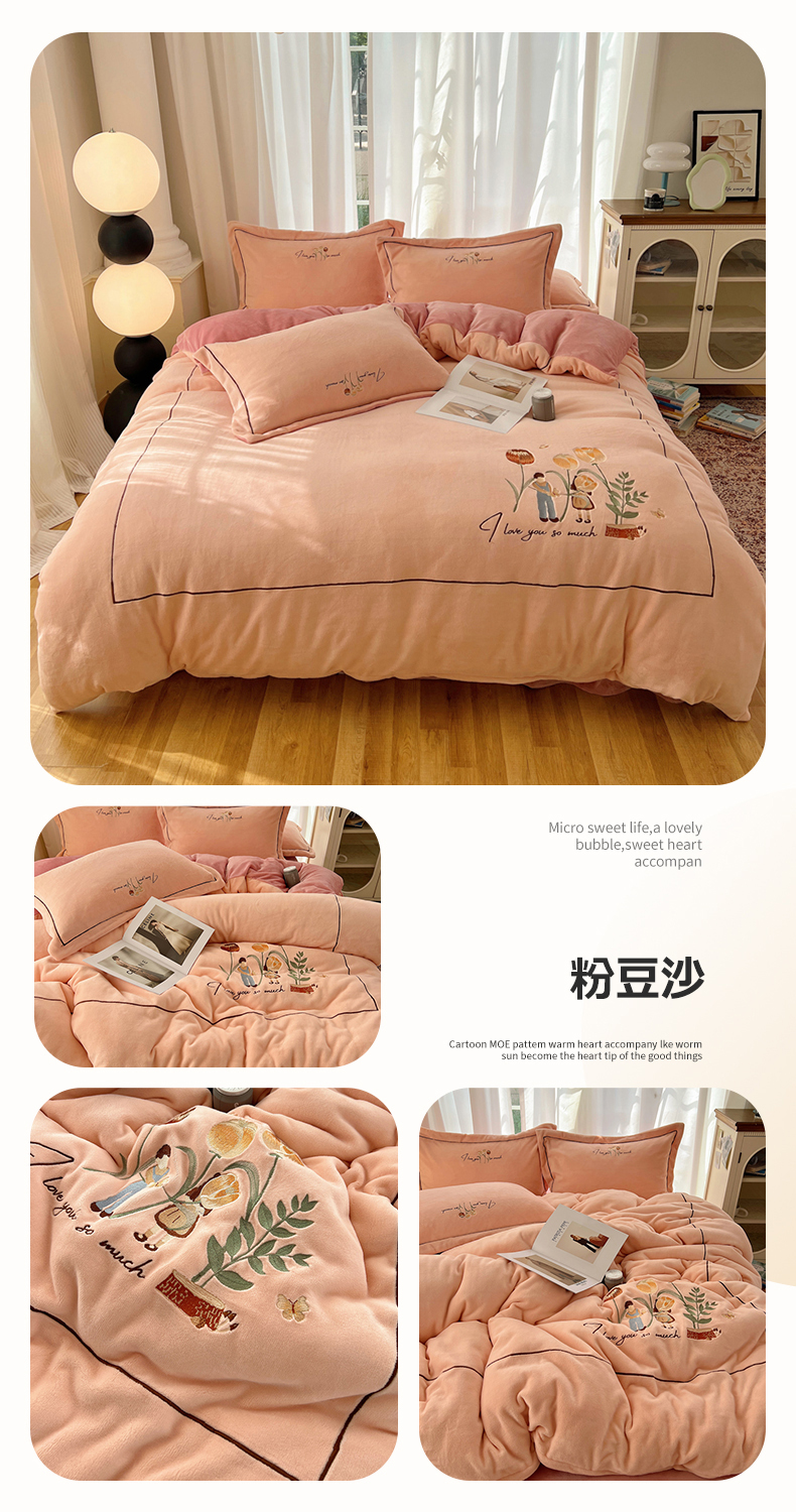 商品名称:丽涵家纺 2025新款全工艺消光锦芙绒绣花四件套 粉豆沙
