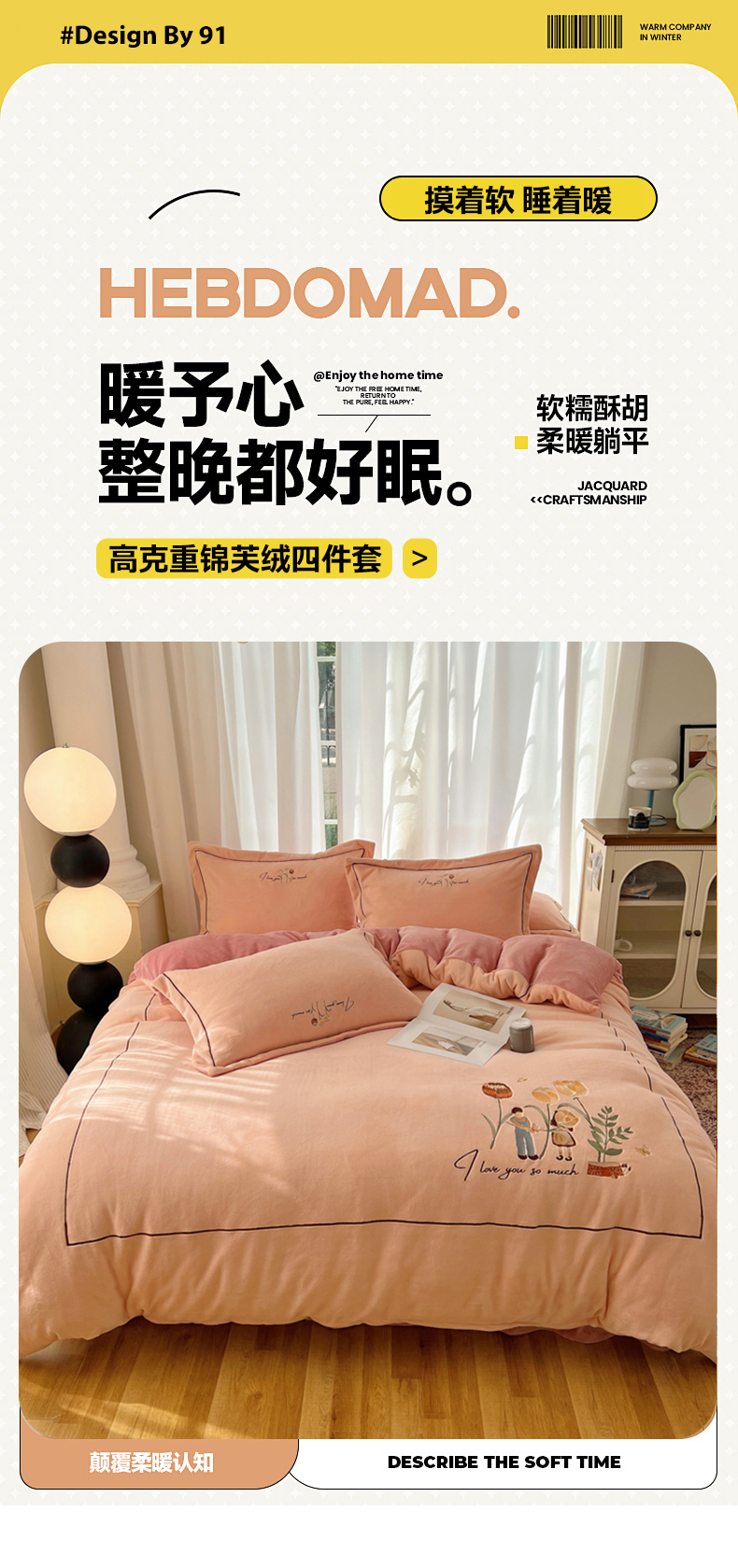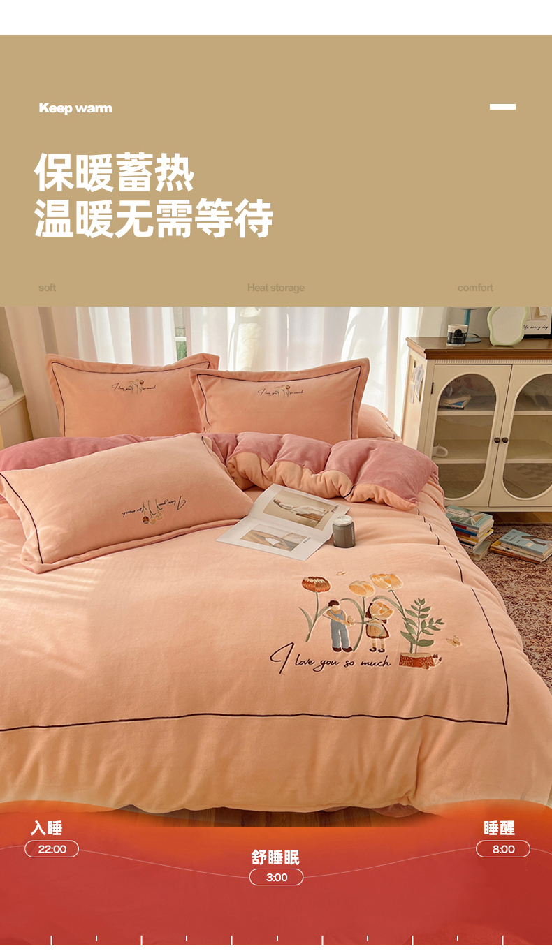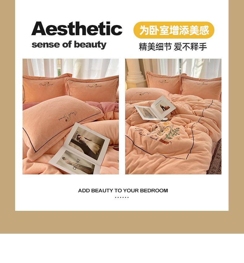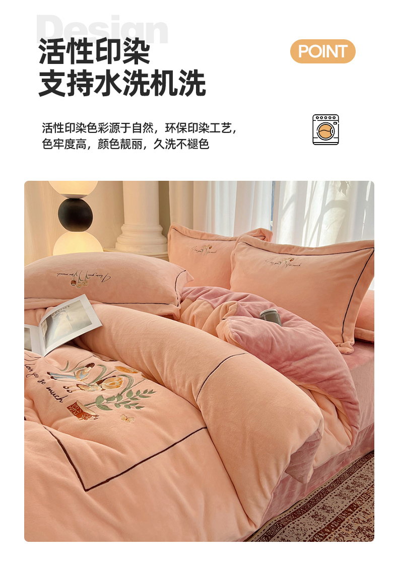 商品名称:丽涵家纺 2025新款全工艺消光锦芙绒绣花四件套 粉豆沙