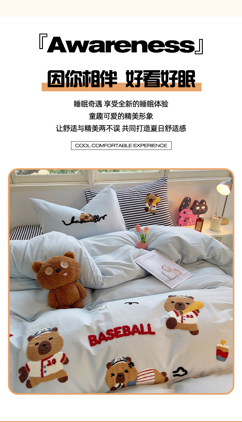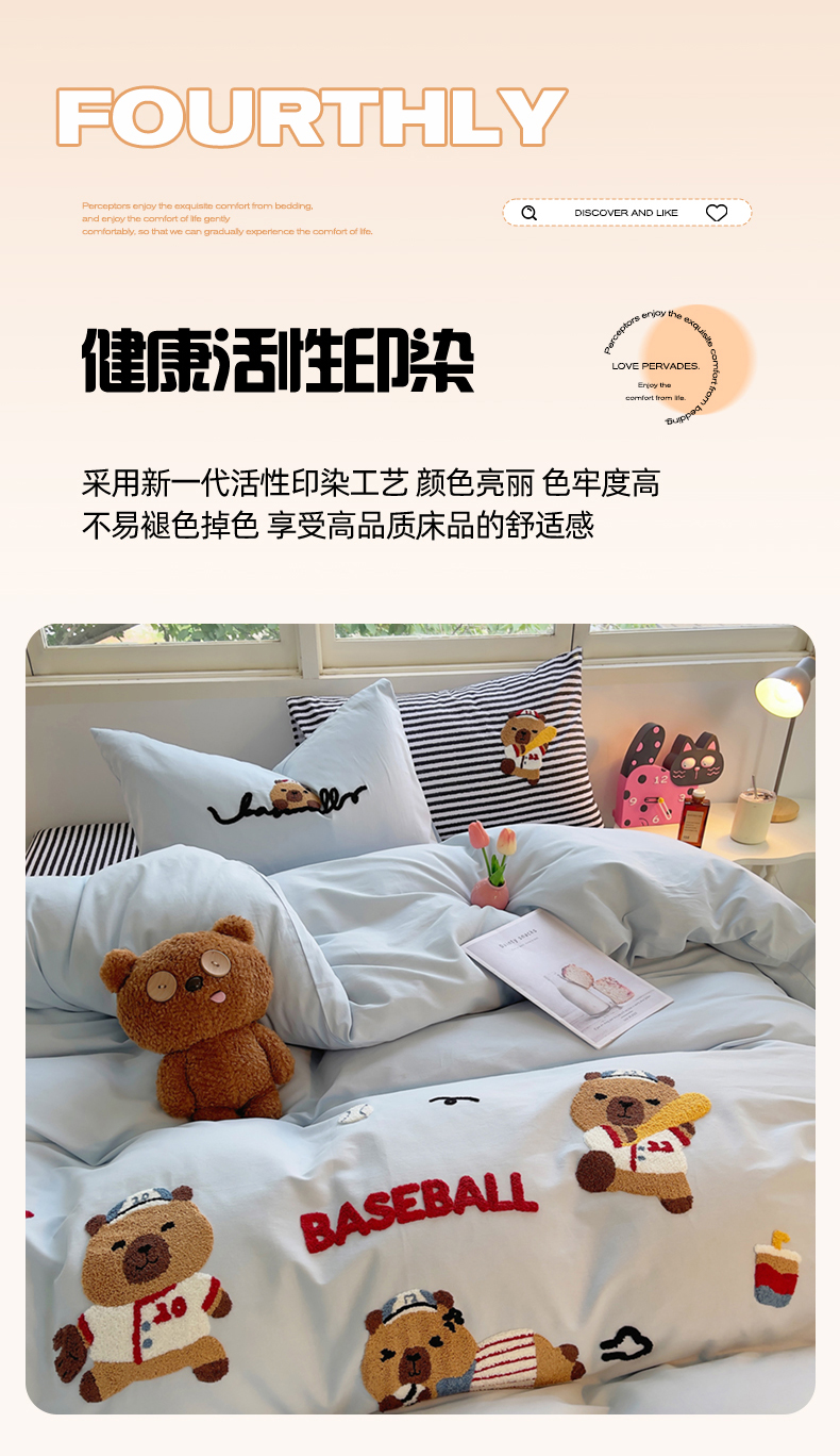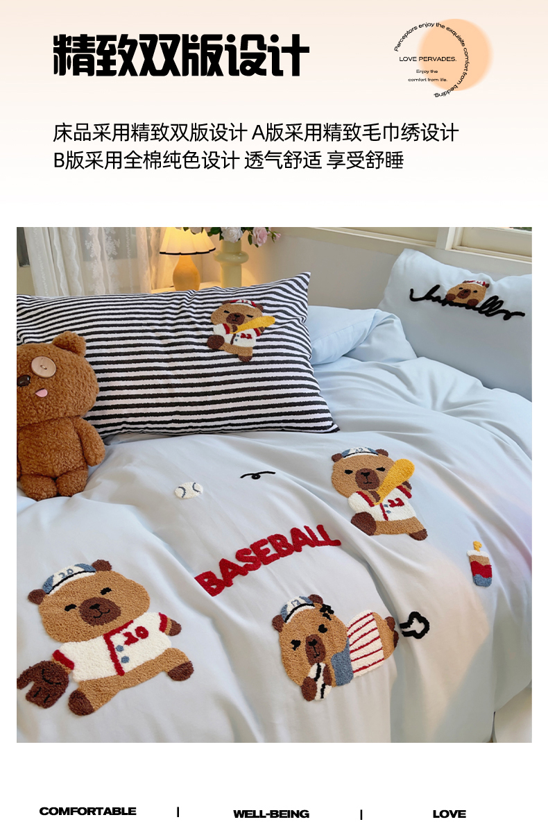 炫拼家纺 2025新款全棉磨毛卡通毛巾绣加厚纯棉四件套-可梦系列 可梦-棒球卡皮