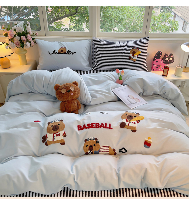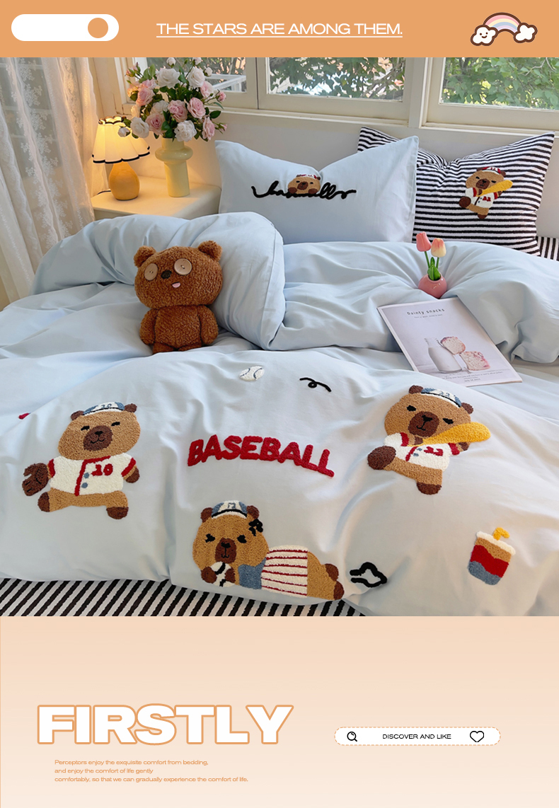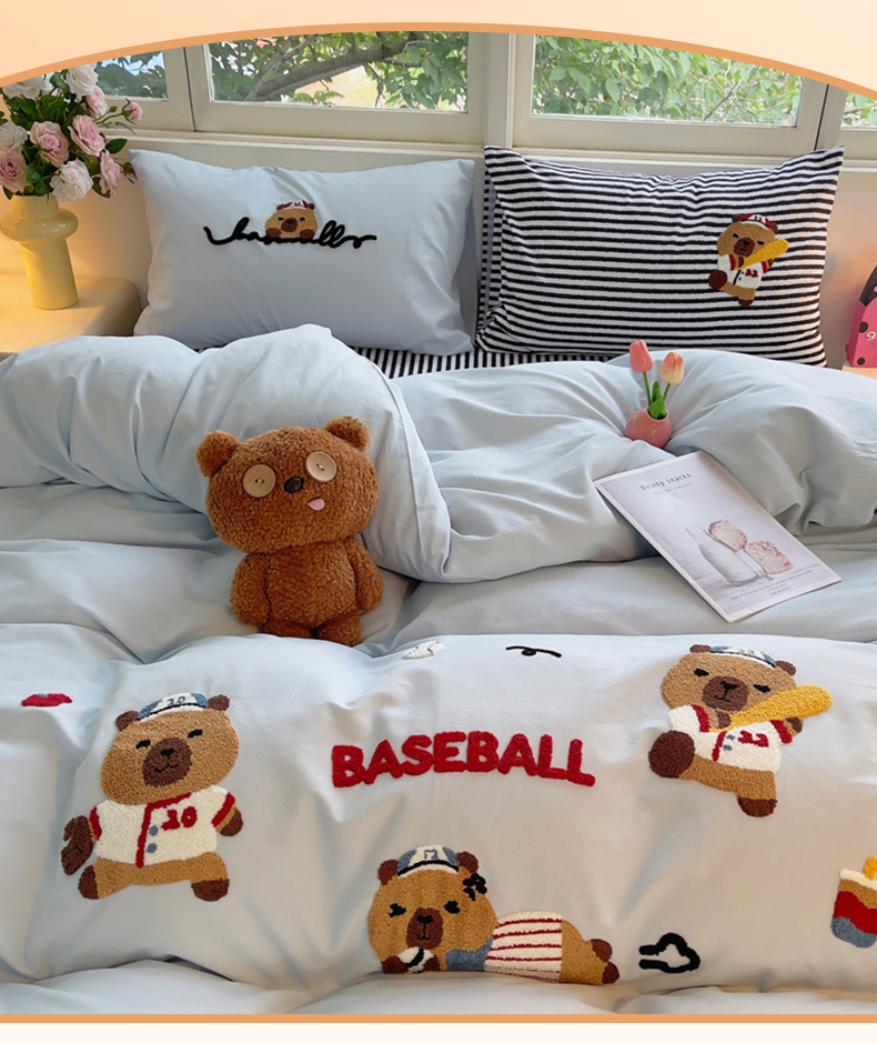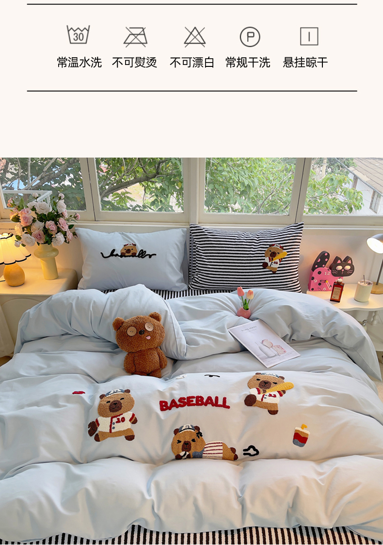 炫拼家纺 2025新款全棉磨毛卡通毛巾绣加厚纯棉四件套-可梦系列 可梦-棒球卡皮
