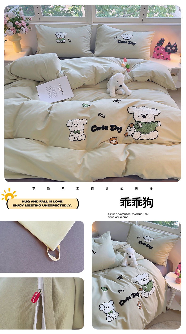 (总)炫拼家纺 2025新款全棉磨毛卡通贴布绣加厚毛巾绣纯棉四件套-曲奇系列,曲奇-苹果狗,曲奇-Good卡皮,曲奇-波点猫,曲奇-好朋友,曲奇-红军熊猫,曲奇-举高高,曲奇-晚安猫