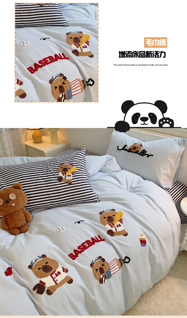 (总)炫拼家纺 2025新款全棉磨毛卡通毛巾绣加厚纯棉四件套-可梦系列,可梦-太空熊猫,可梦-棒球卡皮,可梦-乖乖狗,可梦-好学布布,可梦-腊肠狗米多,可梦-小伙伴,可梦-熊乐园