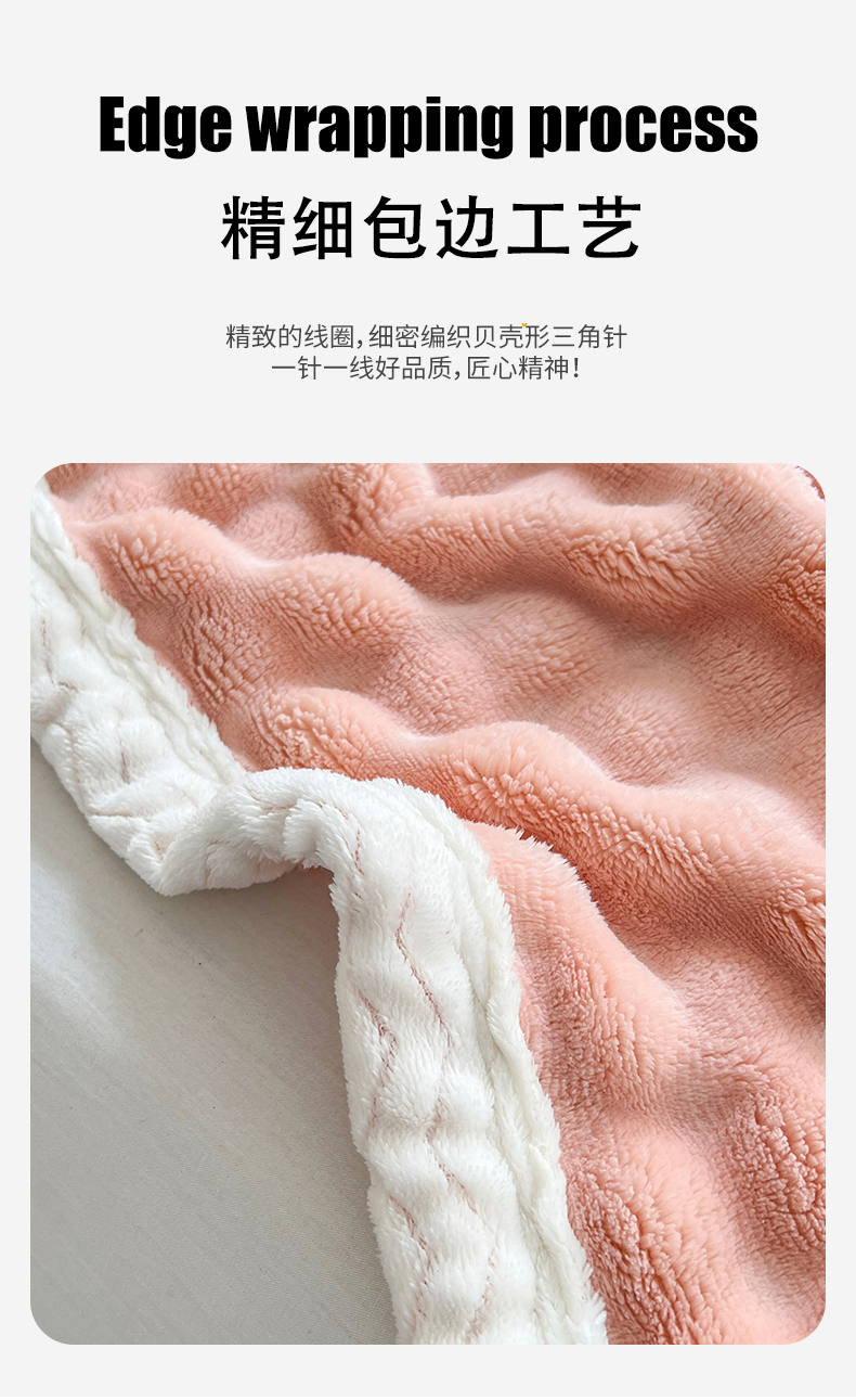 栩裕纺织 2025新款简约仿兔毛泡泡绒毛毯系列-包边款 浅驼