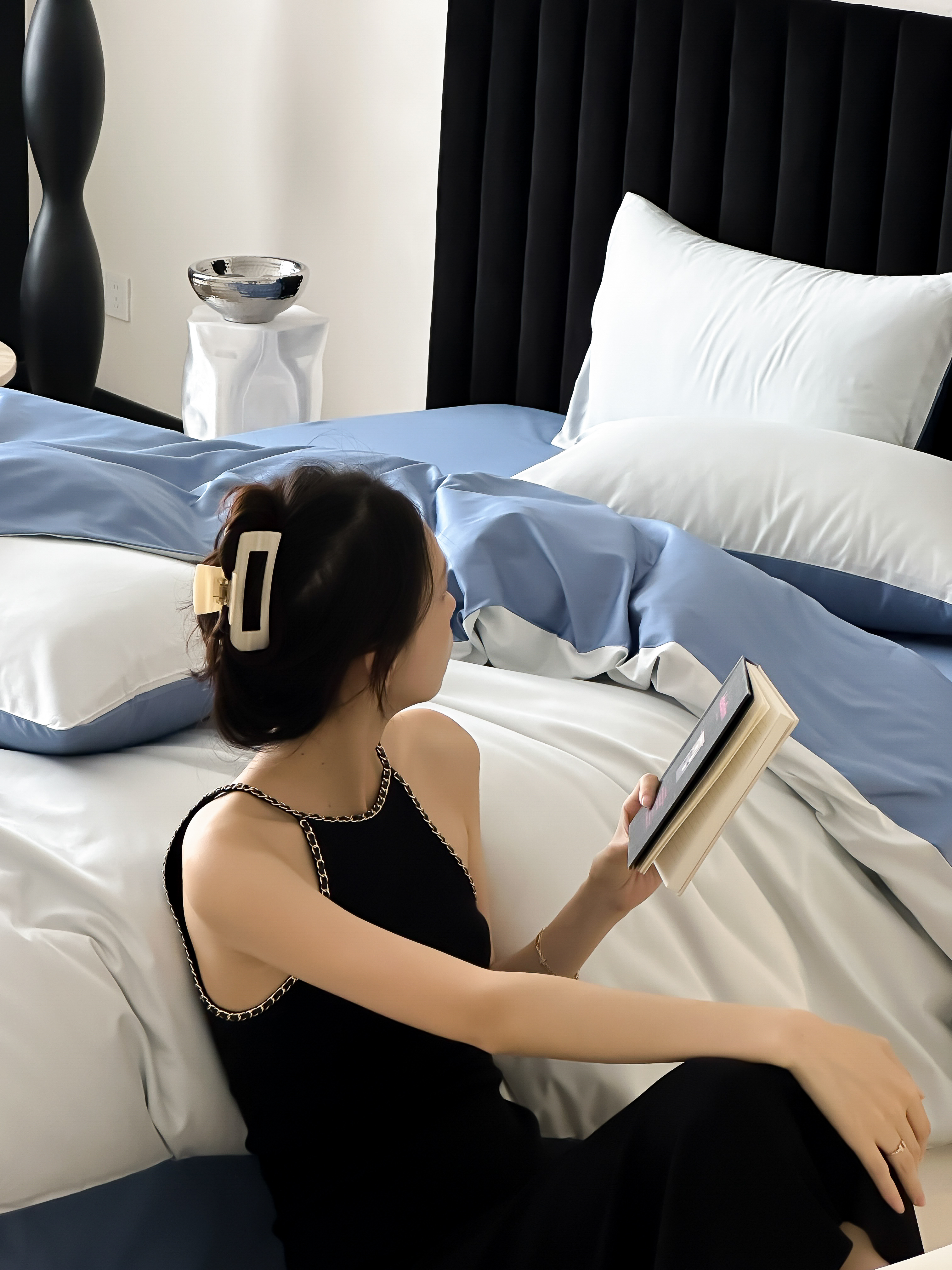 当前位置: 91家纺网 > 商品网购 > 床品套件 > 四件套 > 全棉普通四件套 > 馨蕊家居 2025春夏新品100S高奢简约长绒棉系列-棉拾光(非会员+20) 控价:不低于218/248/268 棉拾光-北卡蓝