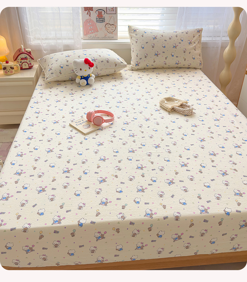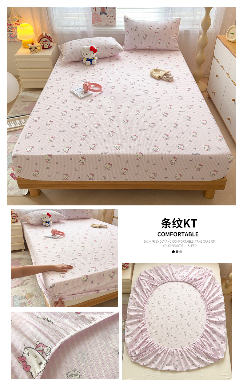 (总)梦庭帛美 2025新款高克重110克云感提花皱皱纱正版三丽鸥床单,甜蜜电话-粉,条纹KT,童趣美乐蒂,彩绘小奶猫,木马美乐蒂,时尚库洛米,甜蜜电话-蓝,粉樱凯蒂,奶芙KT