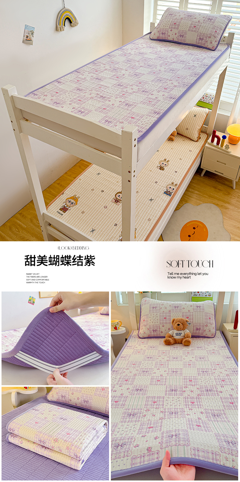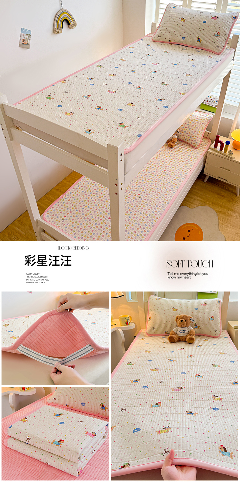 (总)梵朴 2025新款牛奶绒泡泡兔毛绒床垫学生宿舍床褥子床护垫(大床款印花系列)-场景二,爱心蝴蝶结绿,彩虹爱心紫,彩虹哈皮狗,繁星,黄油小熊,咖底蛋糕熊,蕾丝蝴蝶结紫,梦幻太空人,趴趴熊,顽皮小熊猫,星黛露粉,星星小熊灰,音乐狗蓝--,云纹爱心粉