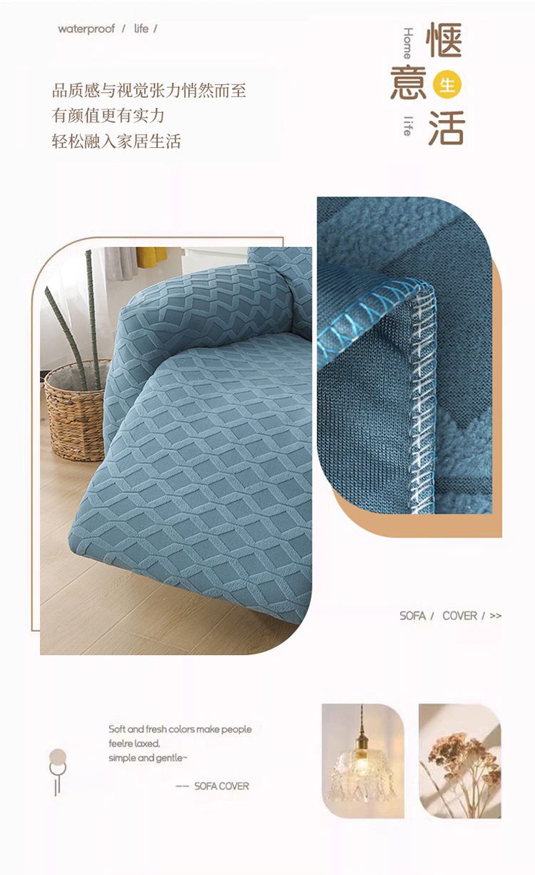 (总)千彤沙发垫 2022新款提花自由生活系列弹力沙发套,豆绿,米黄,深灰,水蓝,银灰,紫色