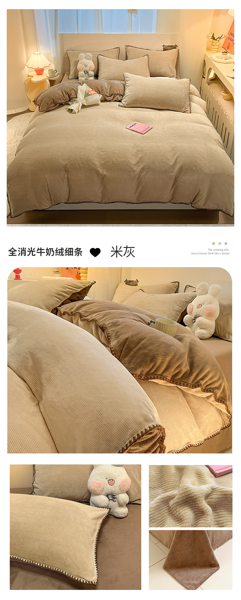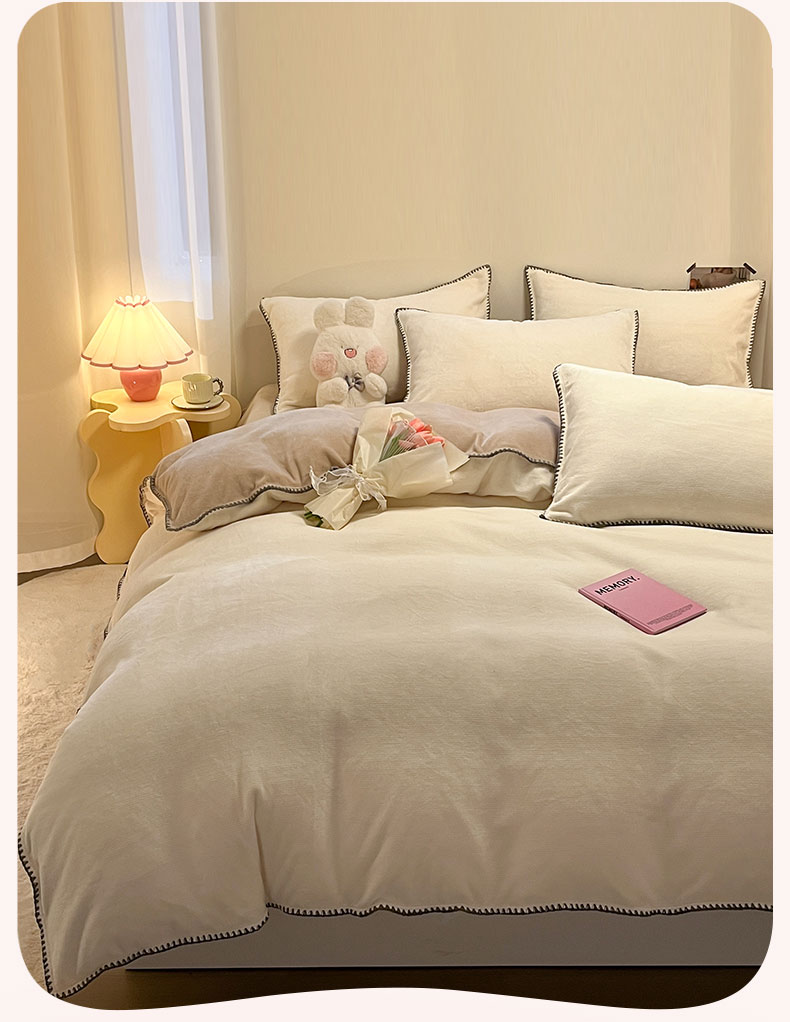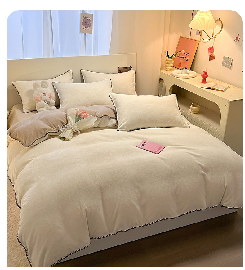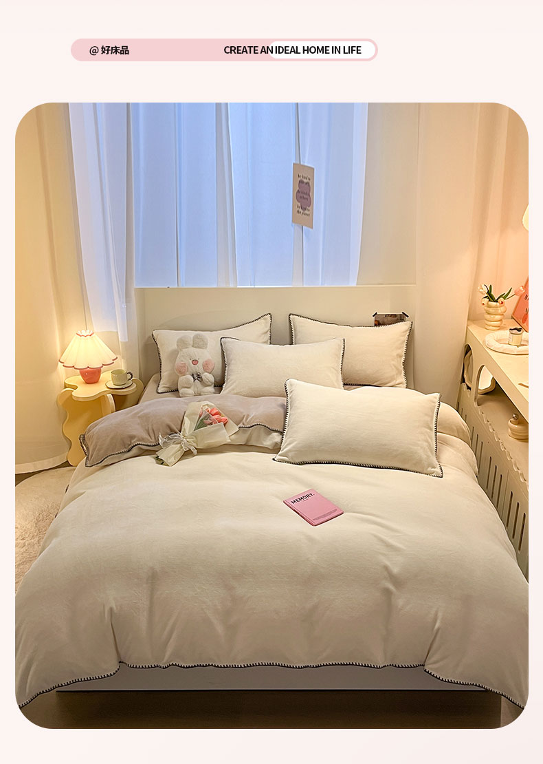 当前位置: 91家纺网 > 商品网购 > 床品套件 > 四件套 > 牛奶绒四件套 > ab家纺 2025新款贝壳边消光牛奶绒四件套 米白