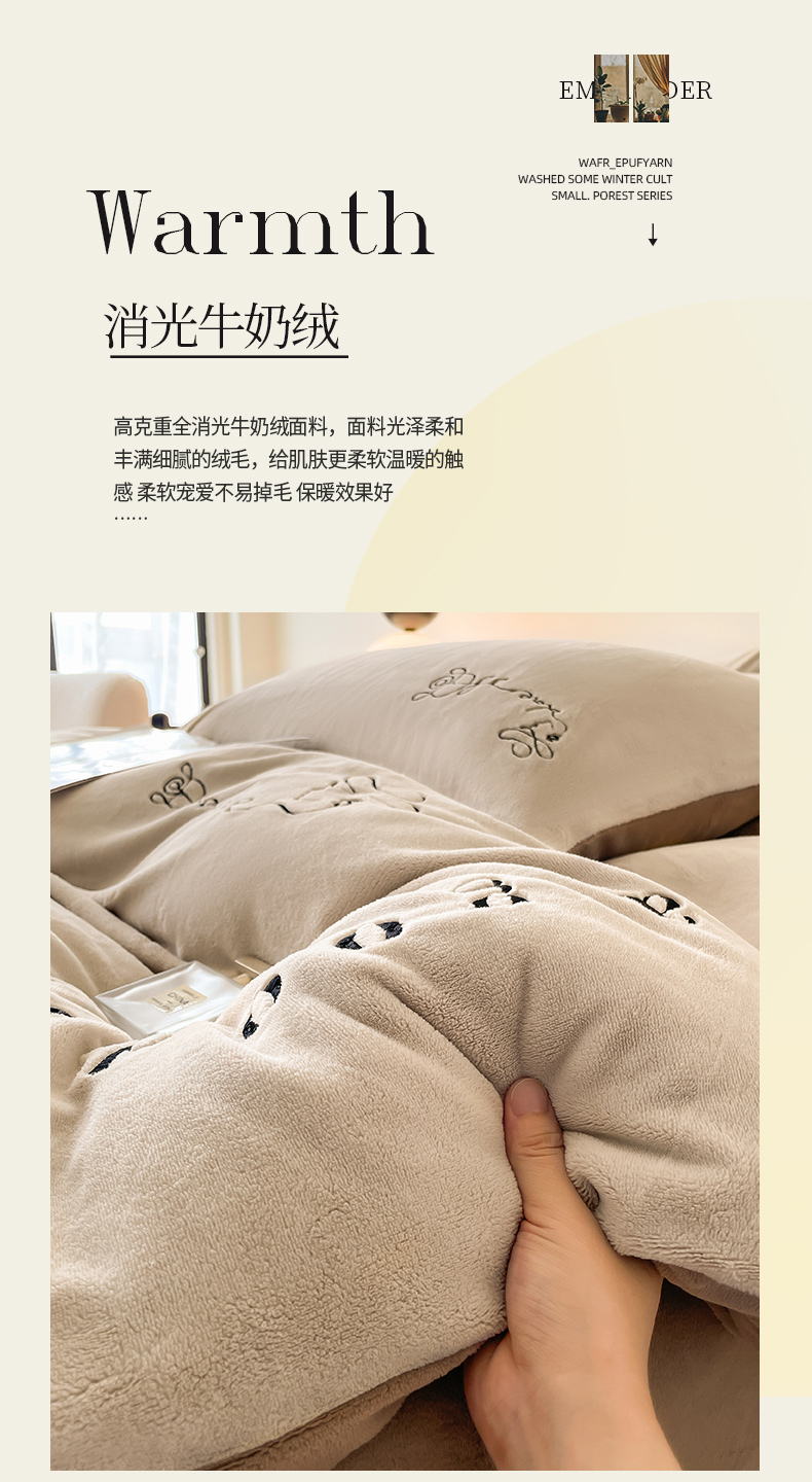 当前位置: 91家纺网 > 商品网购 > 床品套件 > 四件套 > 牛奶绒四件套 > ab家纺 2025新款字母绣花牛奶绒四件套-都市生活 都市生活柯蓝灰咖