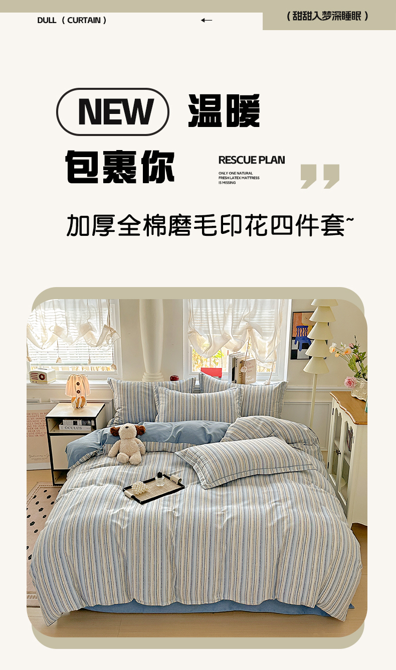 当前位置: 91家纺网 > 商品网购 > 床品套件 > 四件套 > 全棉普通四件套 > 优选直播新款全棉磨毛喷气印花四件套加厚纯棉三件套(一字绣工艺款)学生三件套 蓝漾