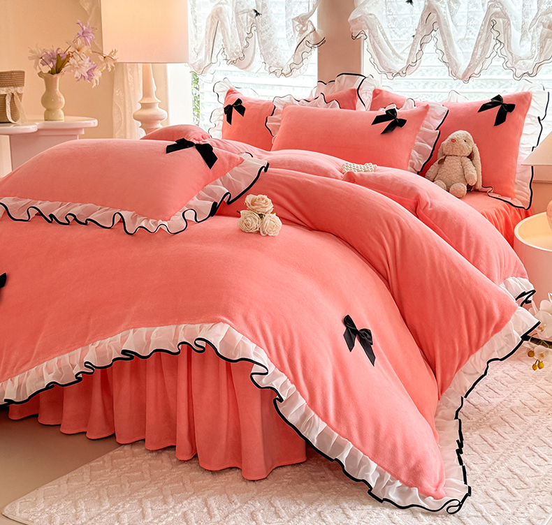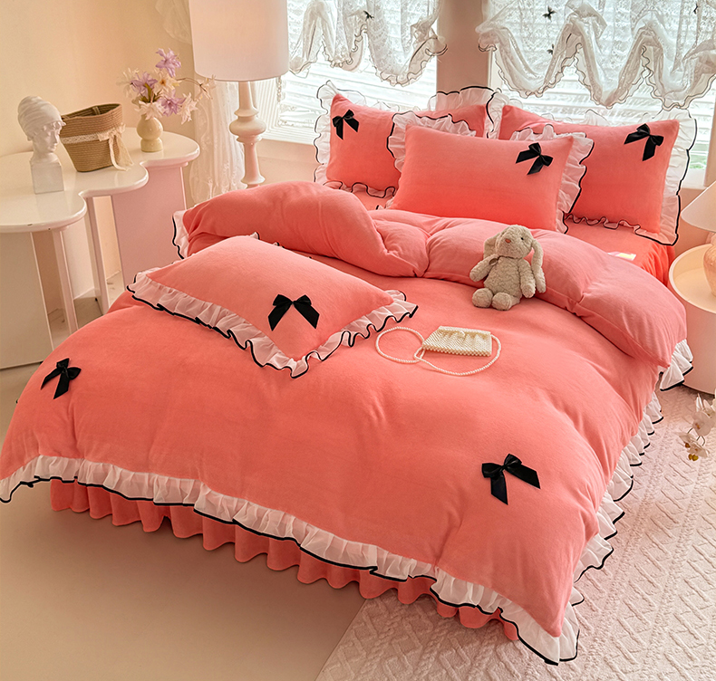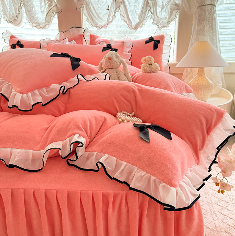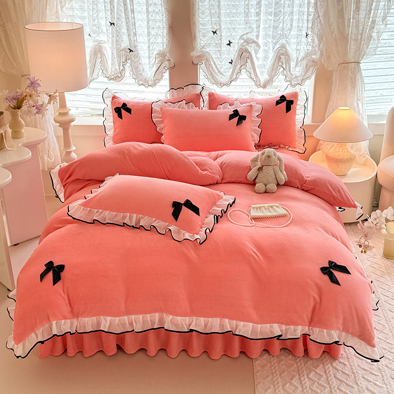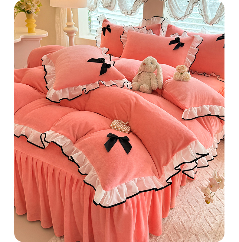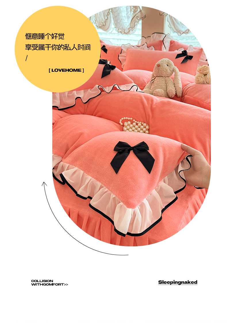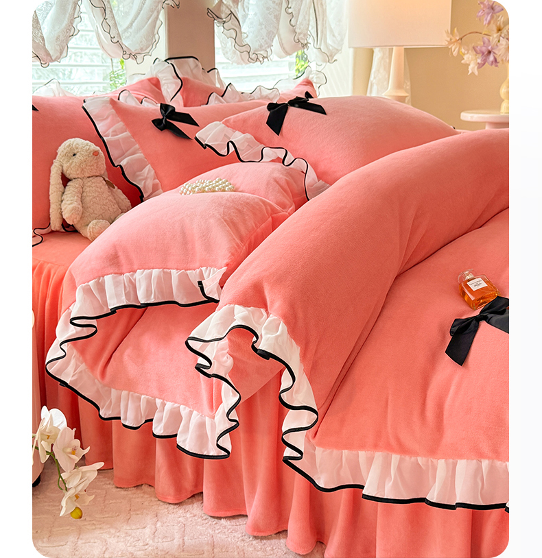 商品名称:莉莉安家纺 2025新款牛奶绒床裙四件套-潘多拉系列 潘多拉-粉