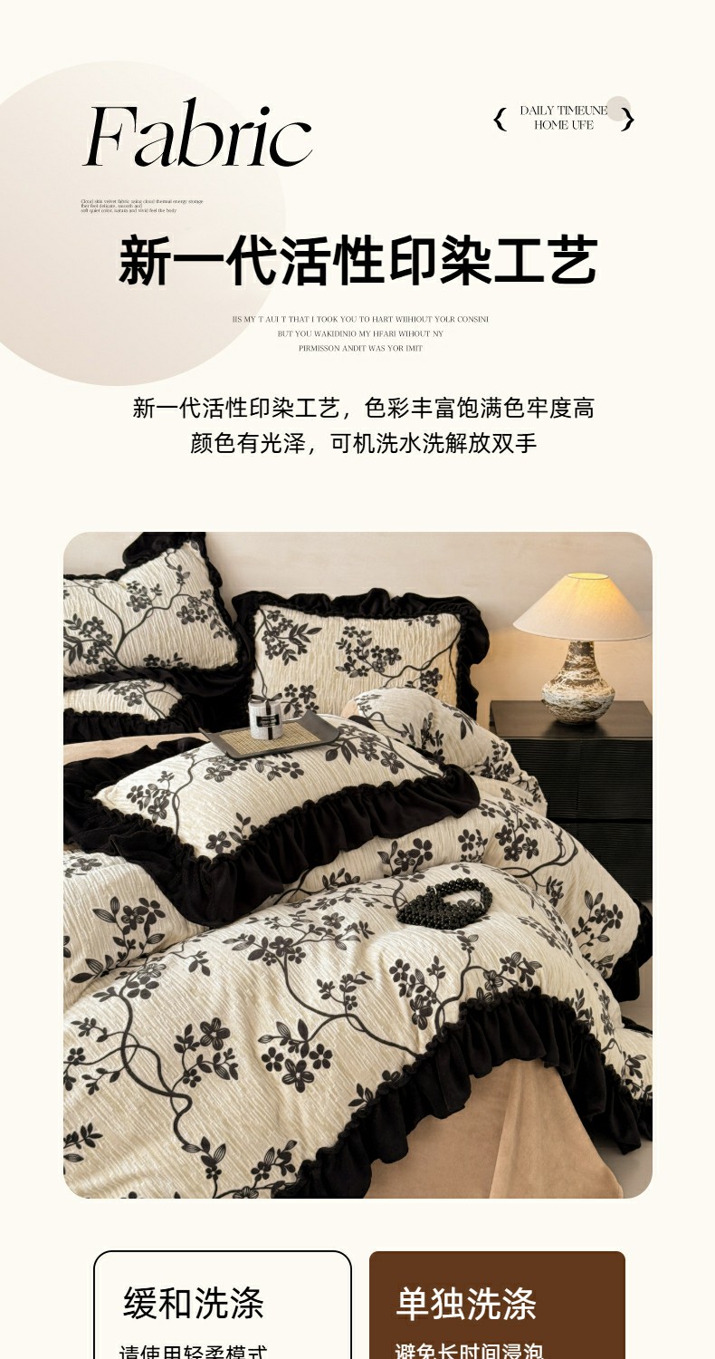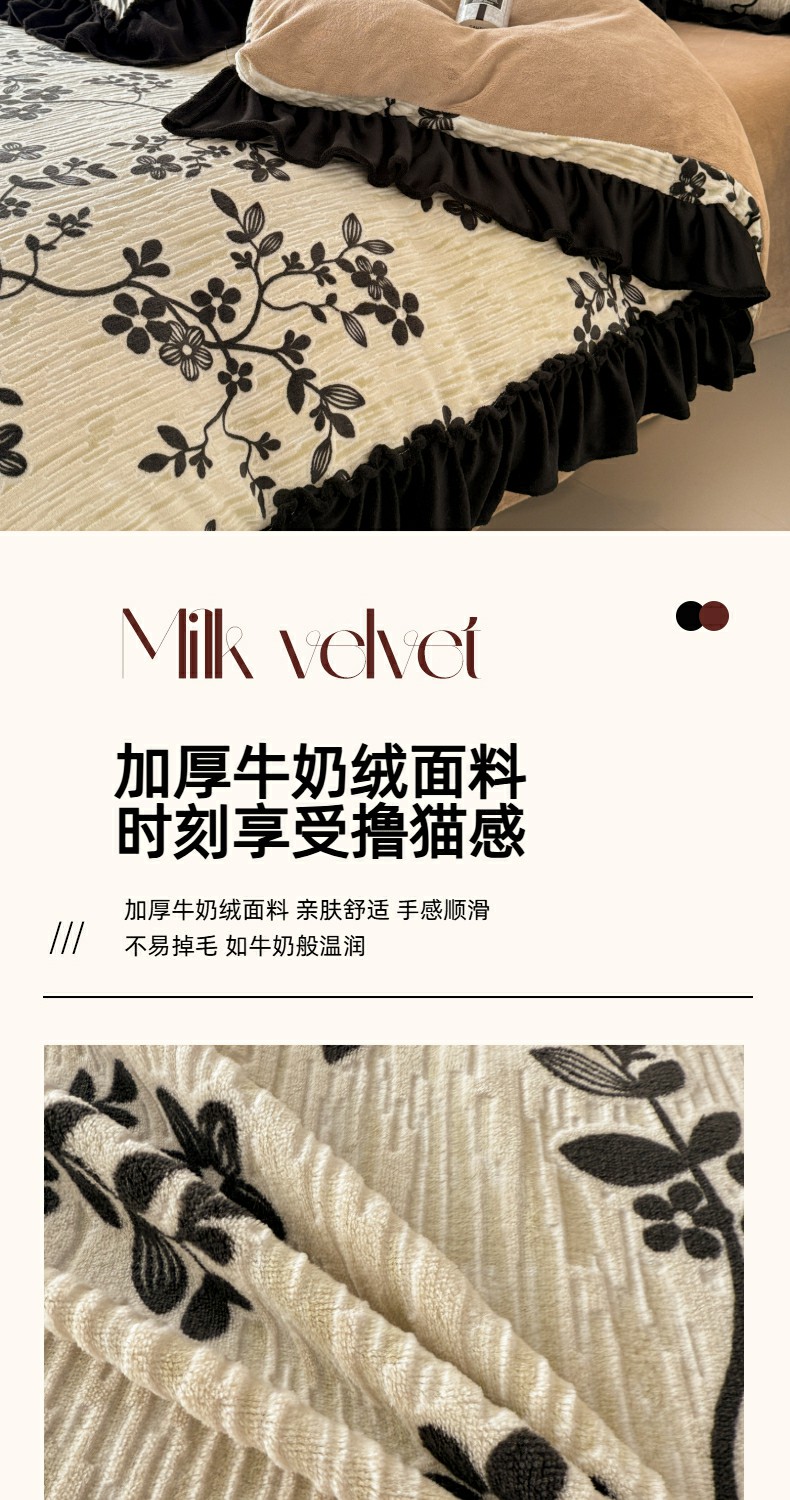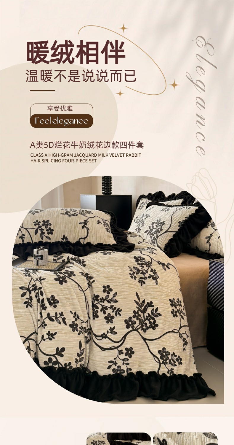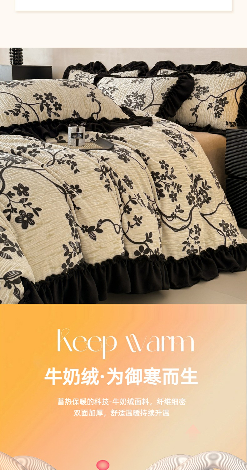 当前位置: 91家纺网 > 商品网购 > 床品套件 > 四件套 > 牛奶绒四件套 > 米莱家纺 2025新款牛奶绒烂花法式花边四件套 米兰