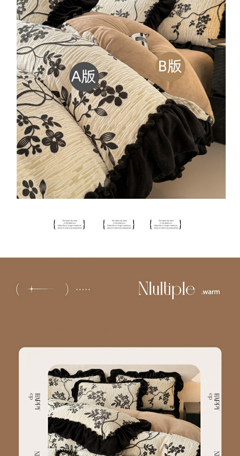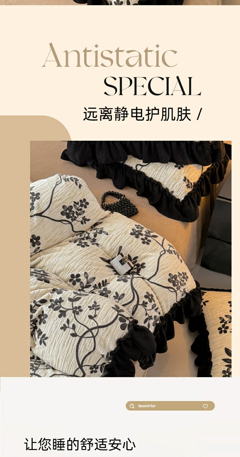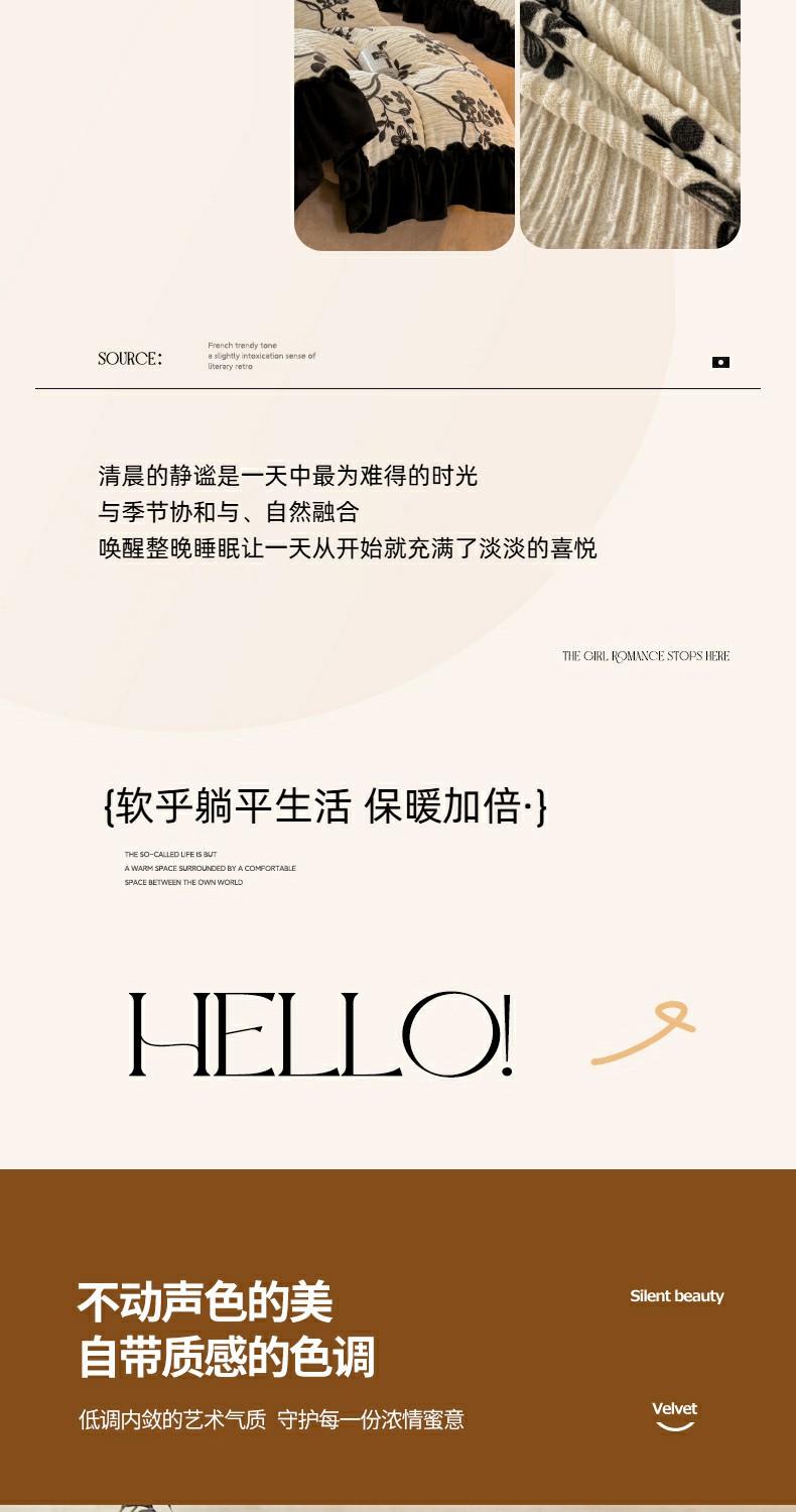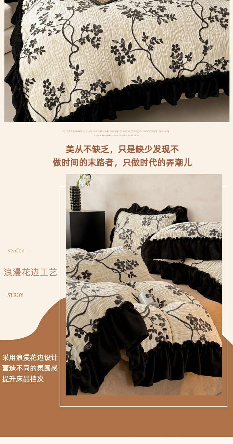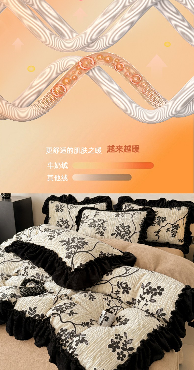 当前位置: 91家纺网 > 商品网购 > 床品套件 > 四件套 > 牛奶绒四件套 > 米莱家纺 2025新款牛奶绒烂花法式花边四件套 米兰