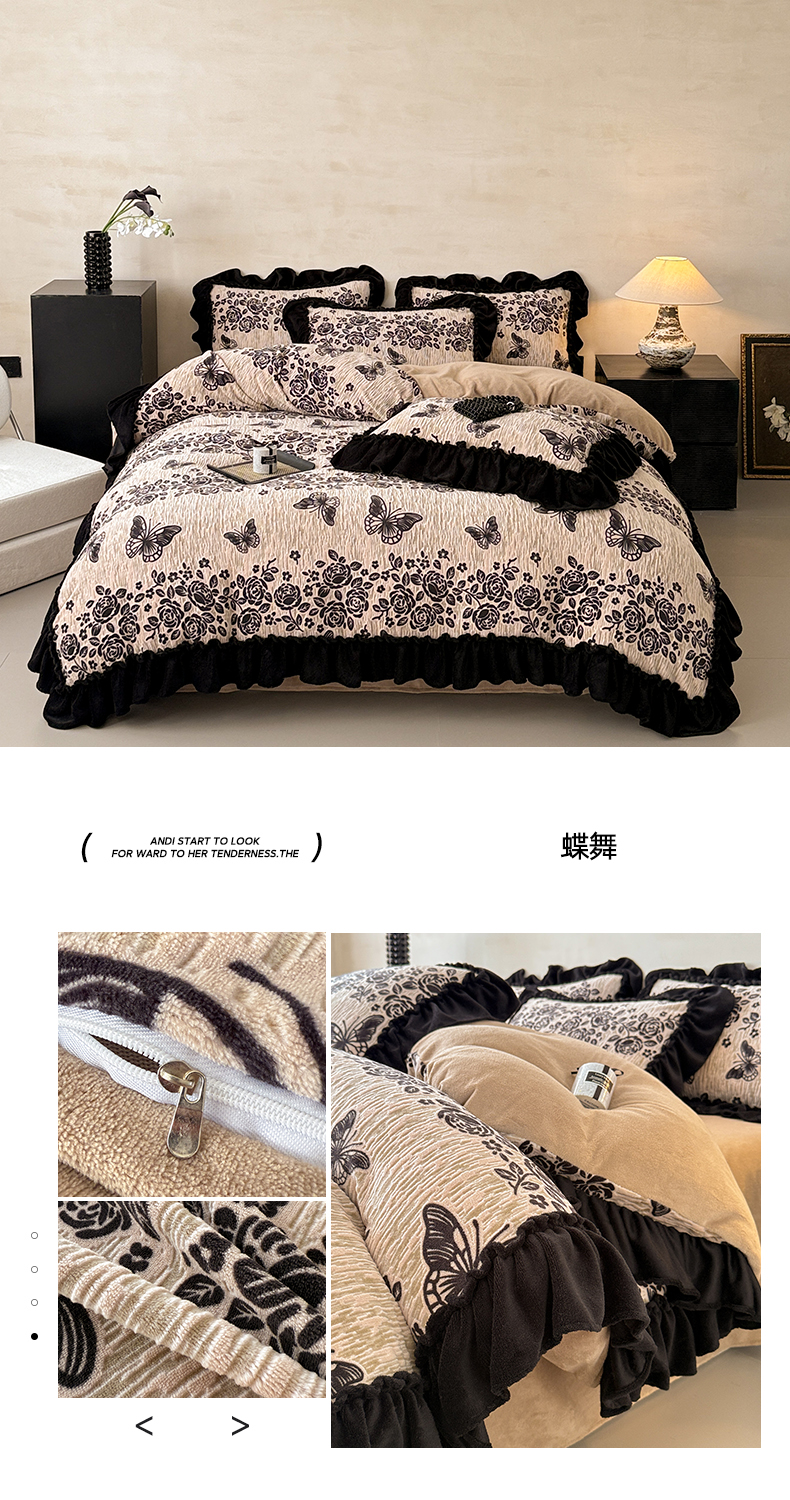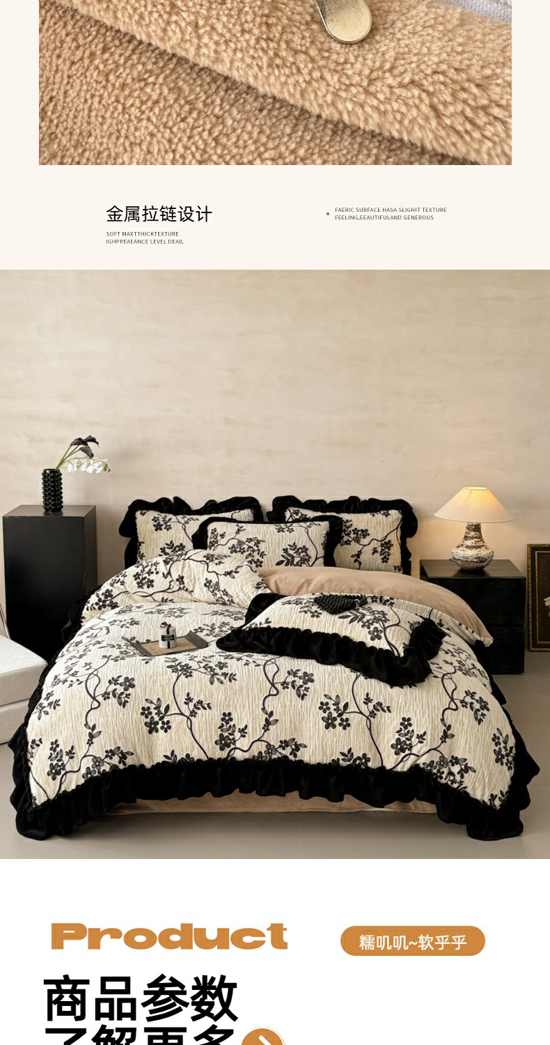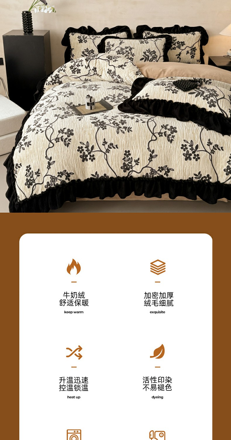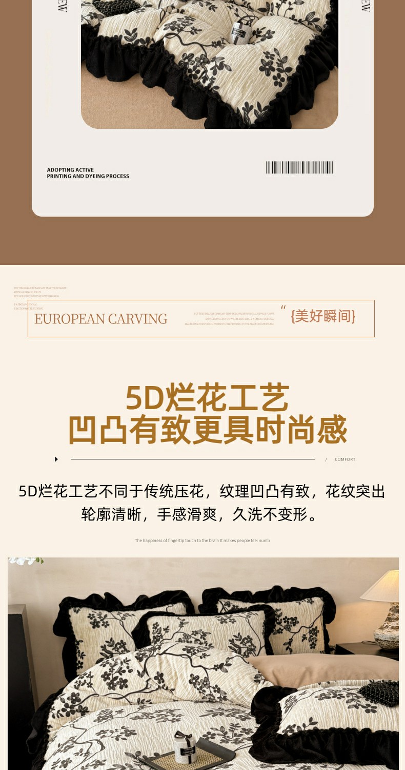 当前位置: 91家纺网 > 商品网购 > 床品套件 > 四件套 > 牛奶绒四件套 > 米莱家纺 2025新款牛奶绒烂花法式花边四件套 米兰
