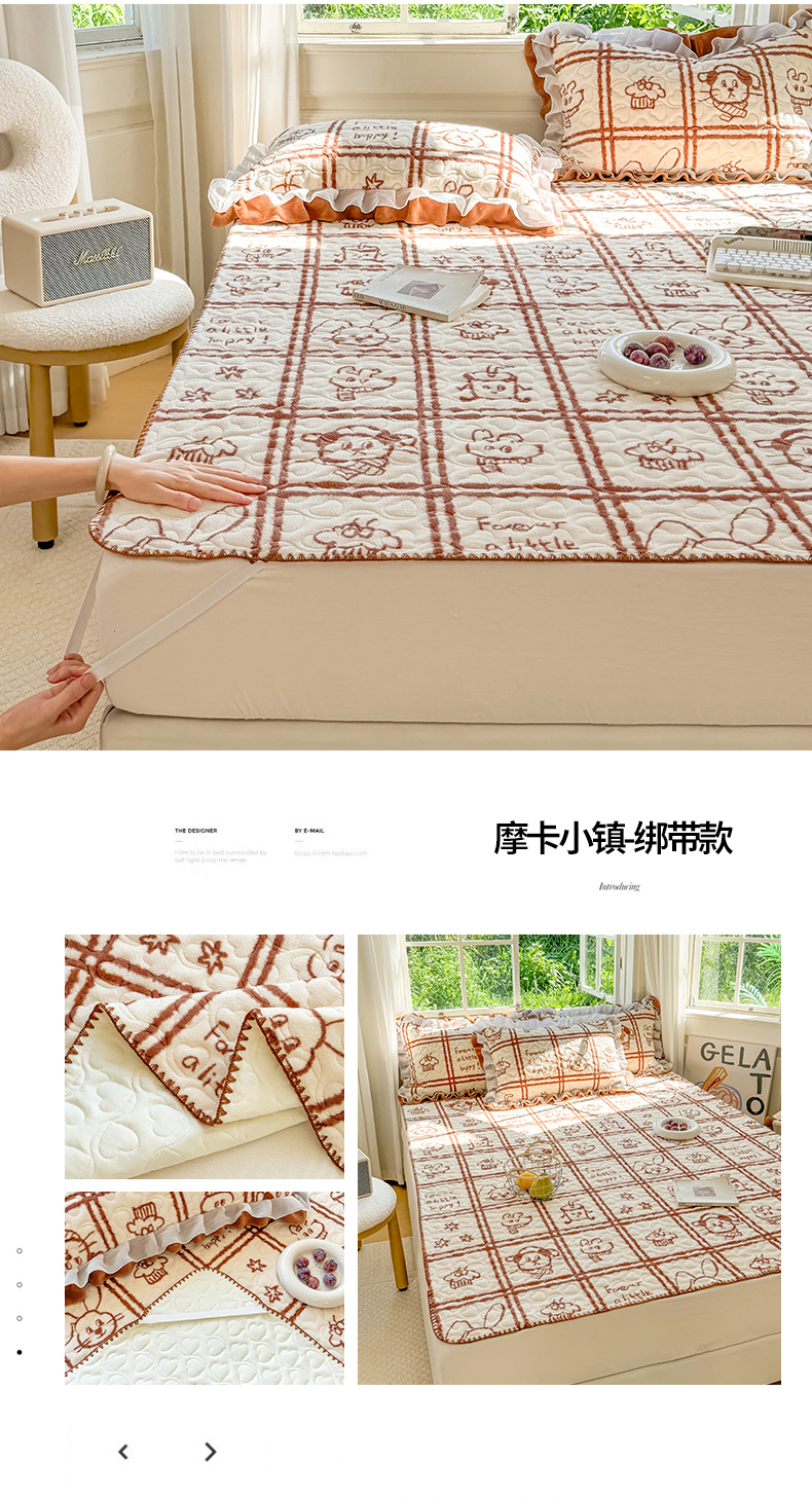 (总)禧缘家纺(原梦想家) 2025新款牛奶绒三角针绑带款夹棉床笠床单,布布乐园-绑带款,步步生花-绑带款,杏花微雨-绑带款,雾都茶花-绑带款,摩卡小镇-绑带款,猫咪心事-绑带款,浪漫花开-绑带款,蓝铃风语-绑带款,狗狗岛屿-绑带款,落日云舒-绑带款