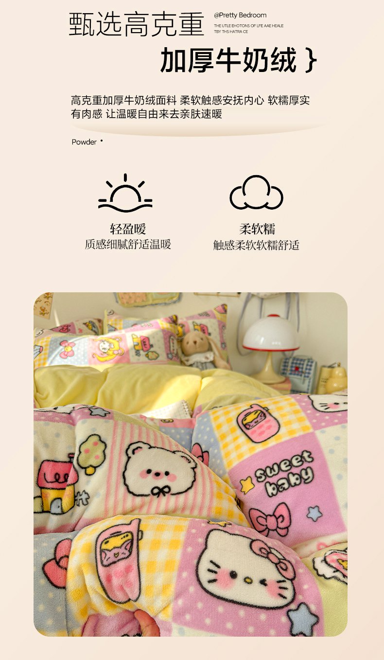 商品名称:(总)韩巢家纺 2025新款双面高克重牛奶绒被套单件被罩