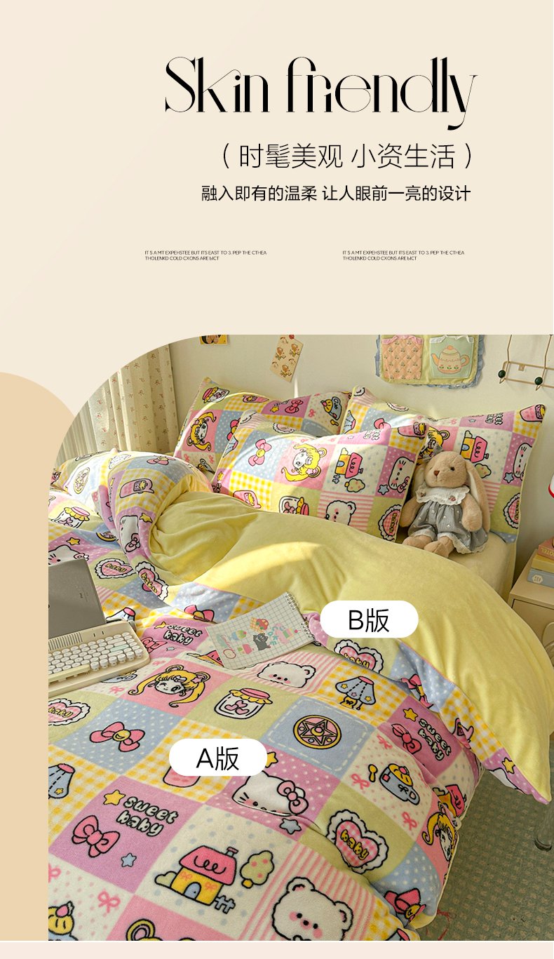 (总)韩巢家纺 2025新款高克重雪花绒牛奶绒四件套,田园兔(黄),爱心熊(绿),巴丽娜,丛林,大白鹅,大耳朵兔,蝶雅,动物世界,花花世界,欢乐小熊,灰色轨迹,咖色熊,库骆米,快乐熊猫,煤小球(粉),米菲,奶油小猫,七彩,天使女孩,小怪兽,小煤球,幸运兔,英伦熊,郁金香