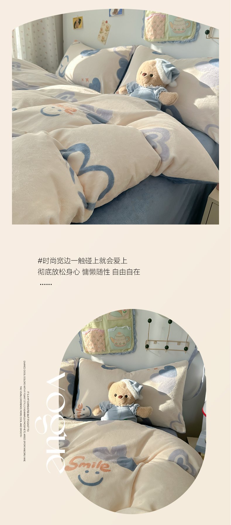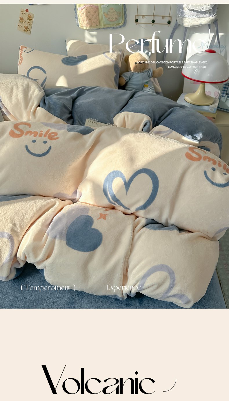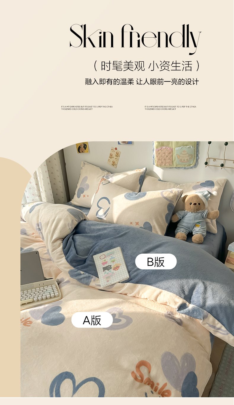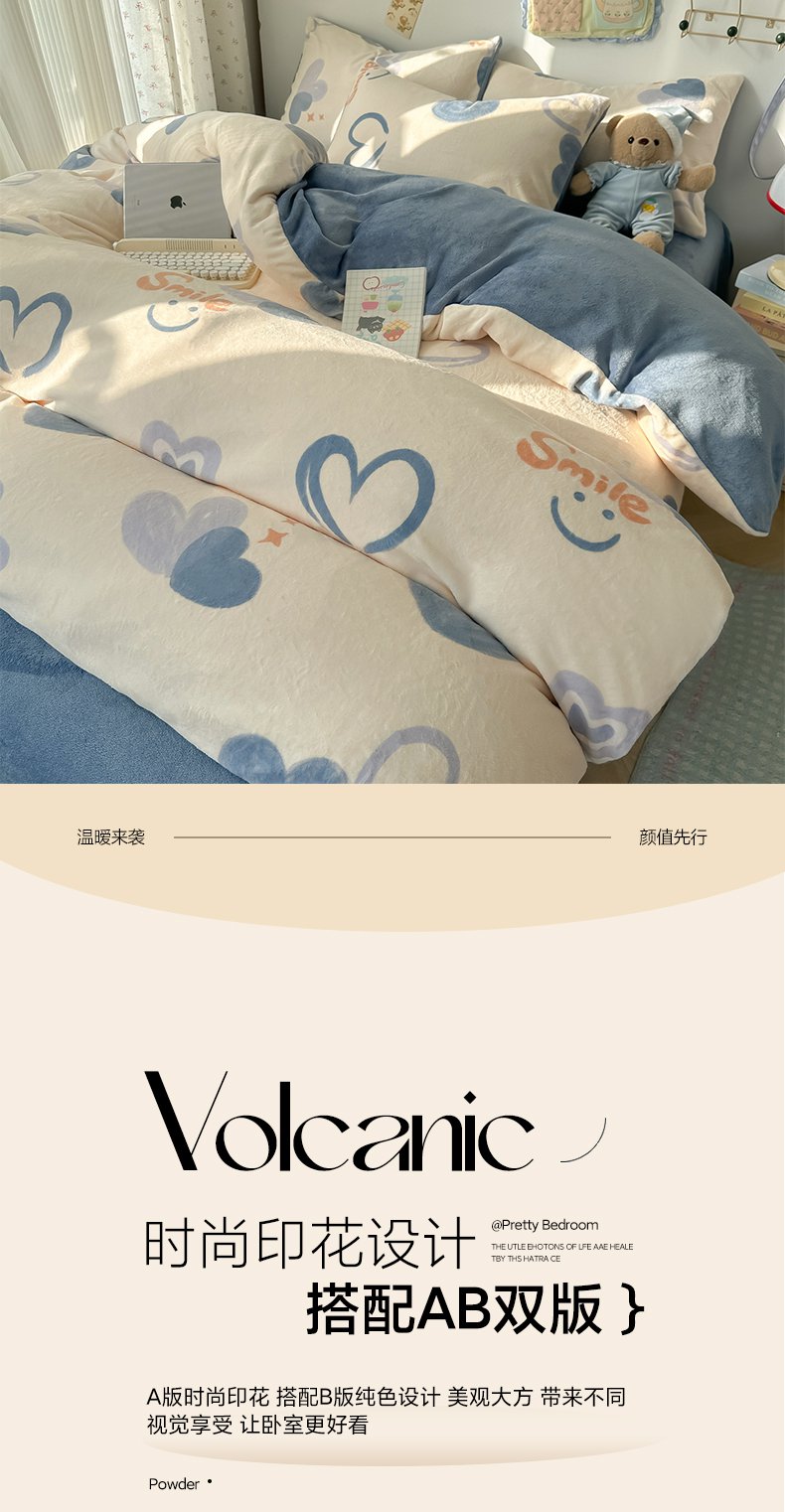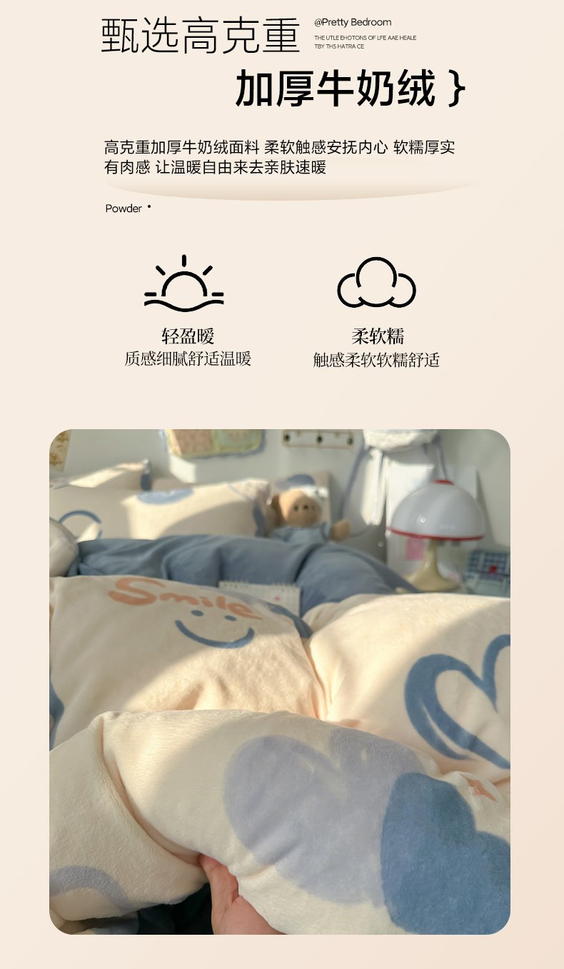 商品名称:韩巢家纺 2025新款双面高克重牛奶绒被套单件被罩 蜡笔心