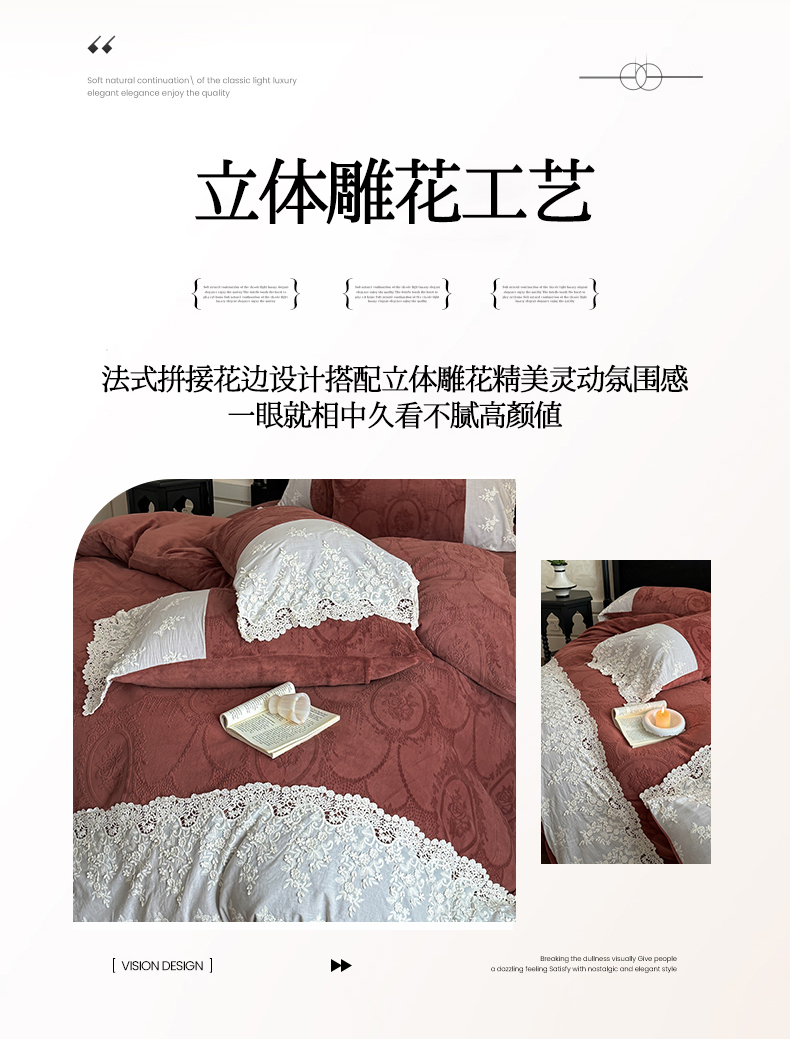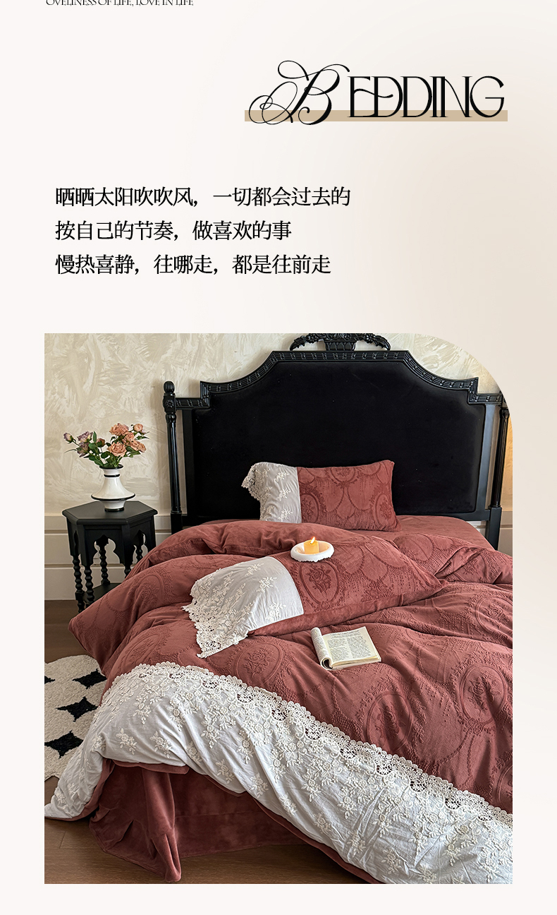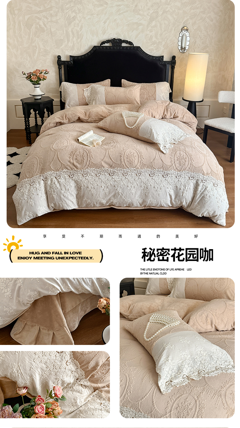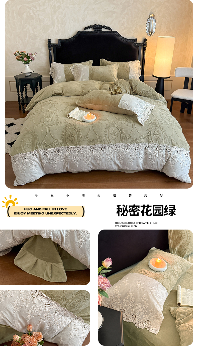 商品名称:吾欢心 2025秋冬新款加厚雕花绒婴儿绒纯棉花边款四件套-秘密花园 秘密花园绿