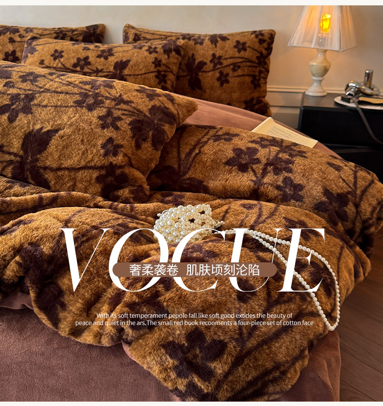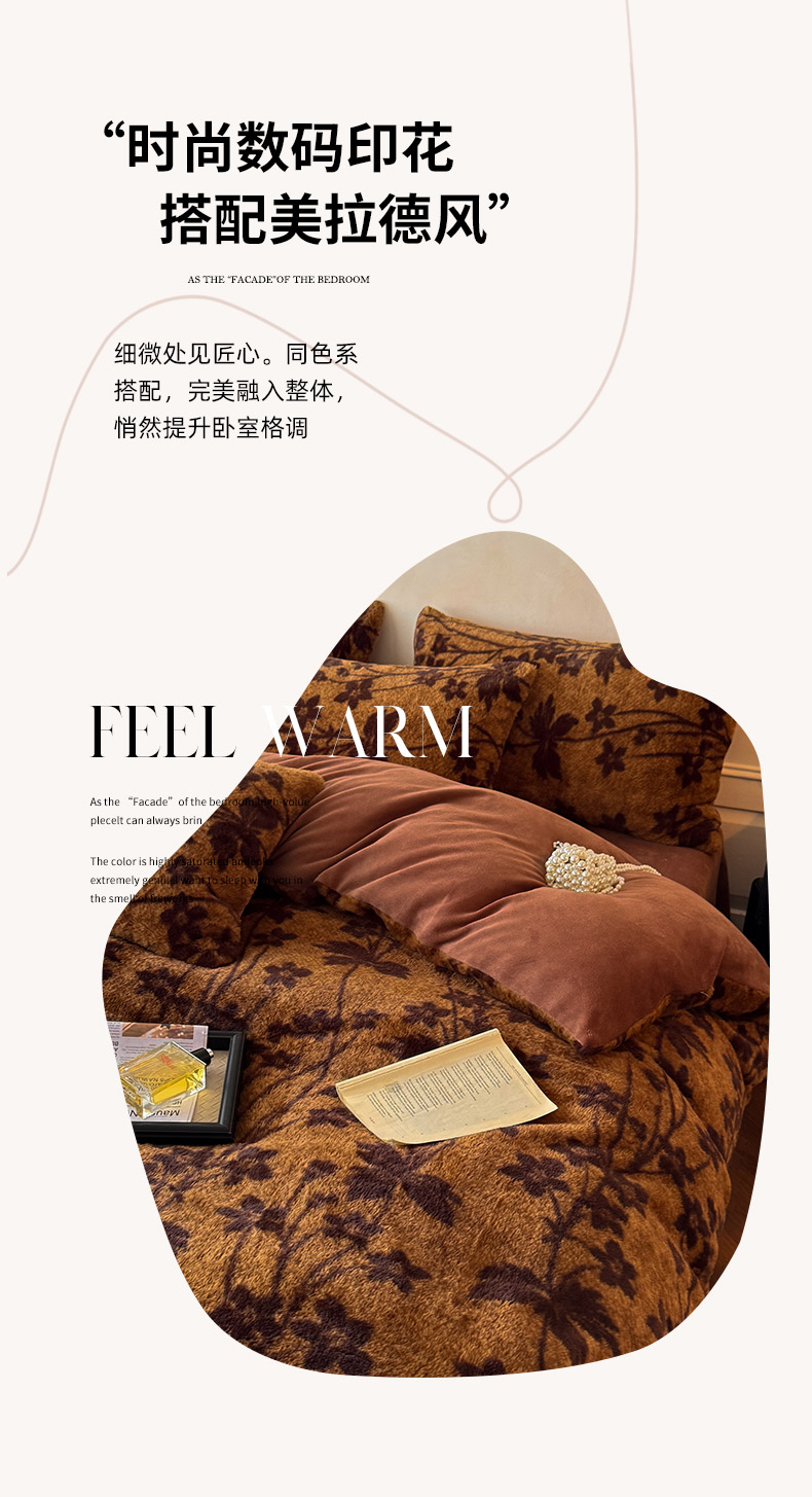 商品名称:吾诺家居2025新款美拉德260克兔毛四件套数码四件套牛奶绒四件套 瑞秋-深棕