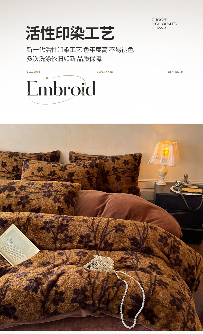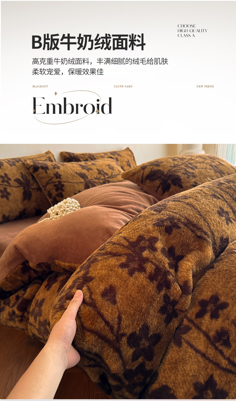 (总)吾诺 兔毛边230克雕花牛奶绒四件套 - 秋意系列,朝花,紫叶,花海,轻羽,飞花,秋意,冬梅,华美,春野
