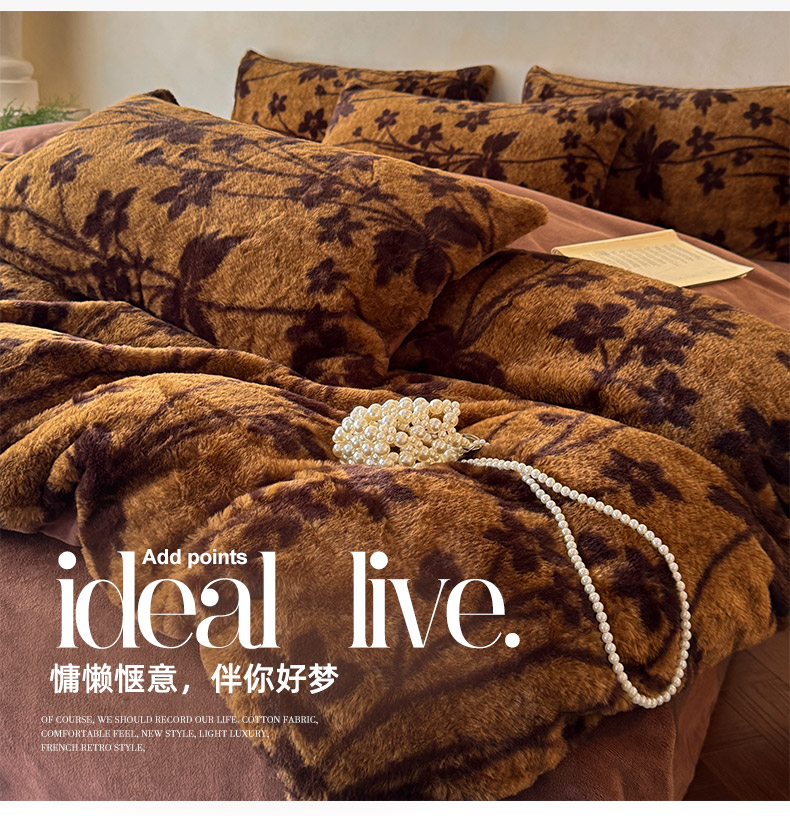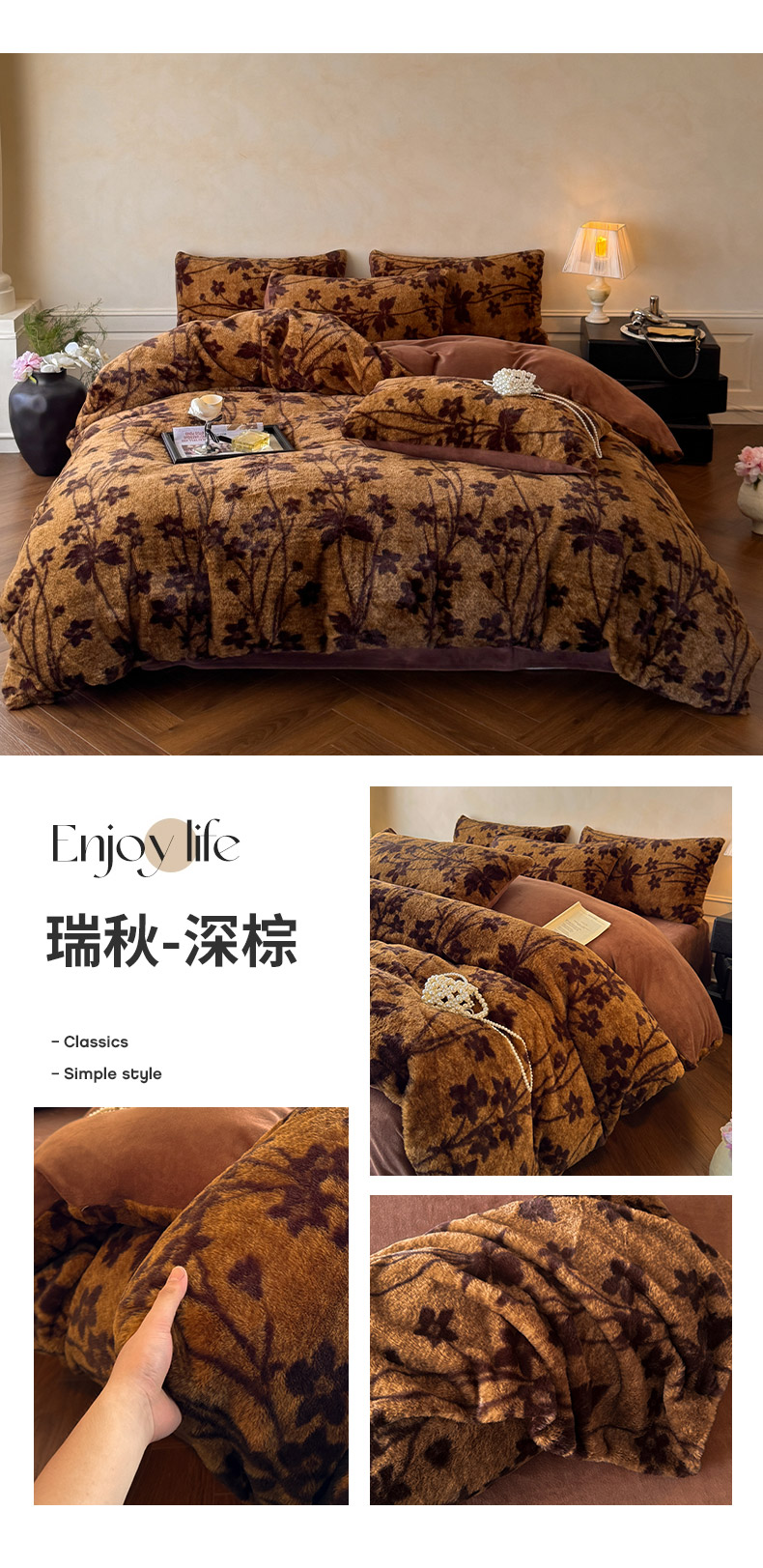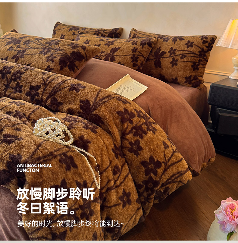 吾诺家居2025新款美拉德260克兔毛四件套数码四件套牛奶绒四件套 瑞秋-深棕