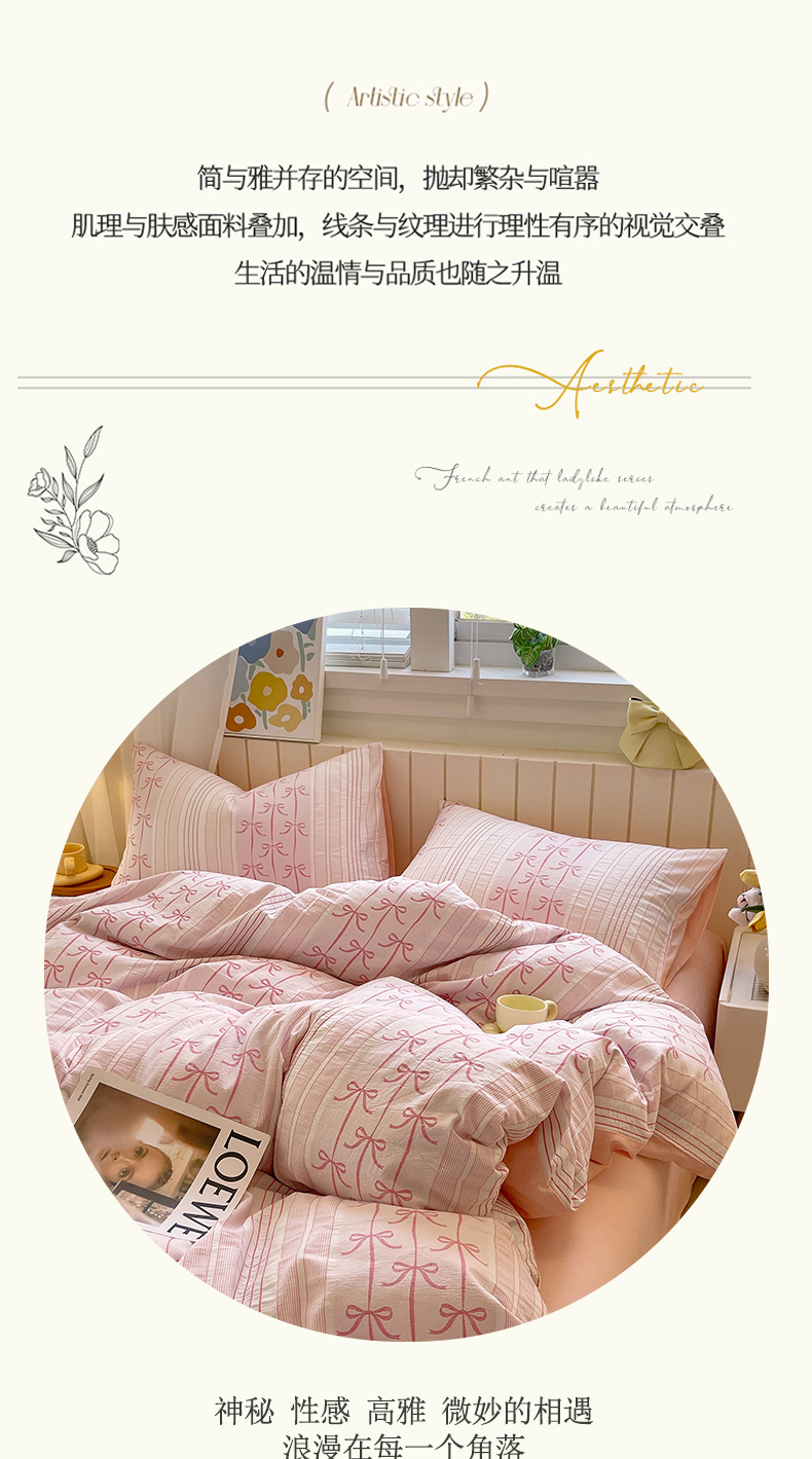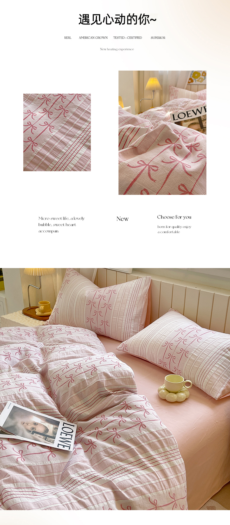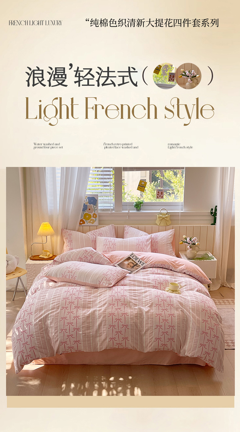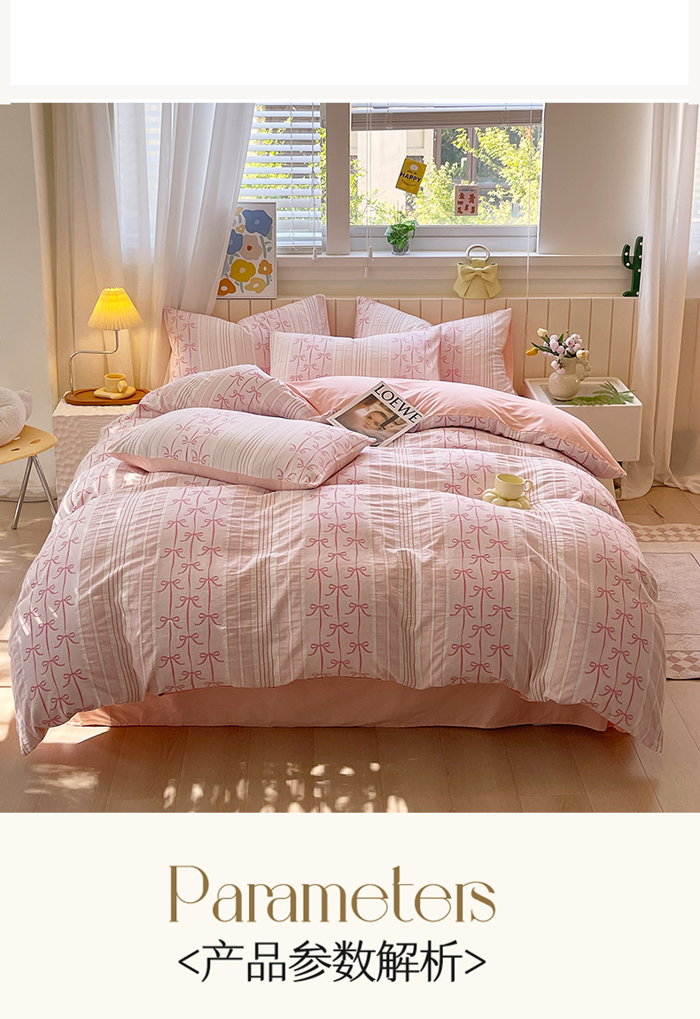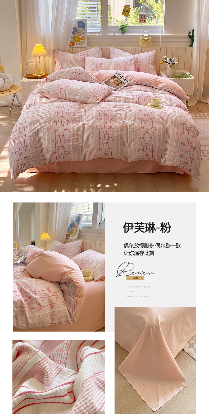 当前位置: 91家纺网 > 商品网购 > 床品套件 > 四件套 > 全棉普通四件套 > 琪格格纺织 2025新款全棉纯棉色织提花小清新四件套 伊芙琳-粉