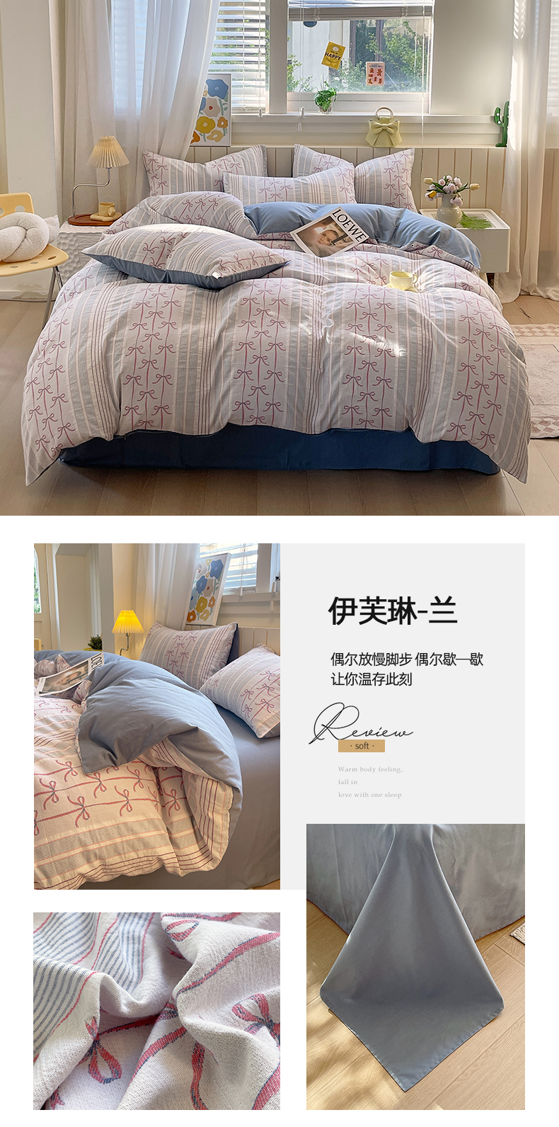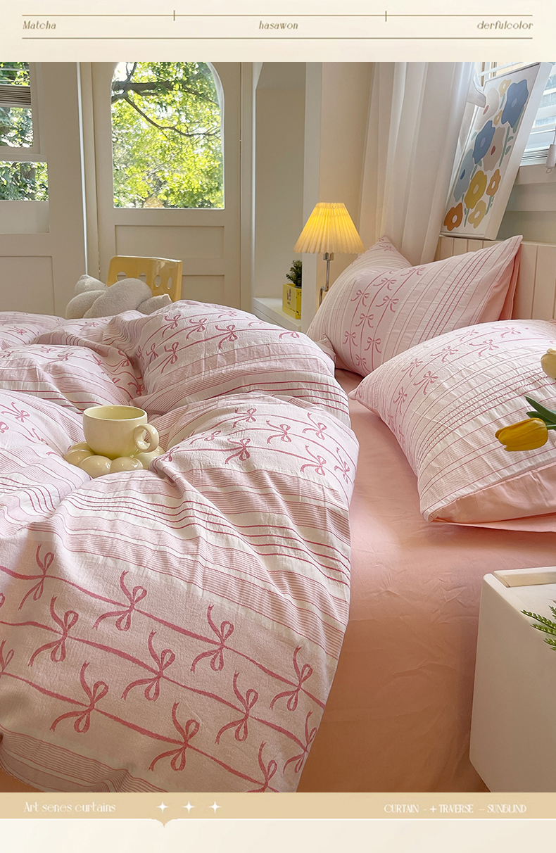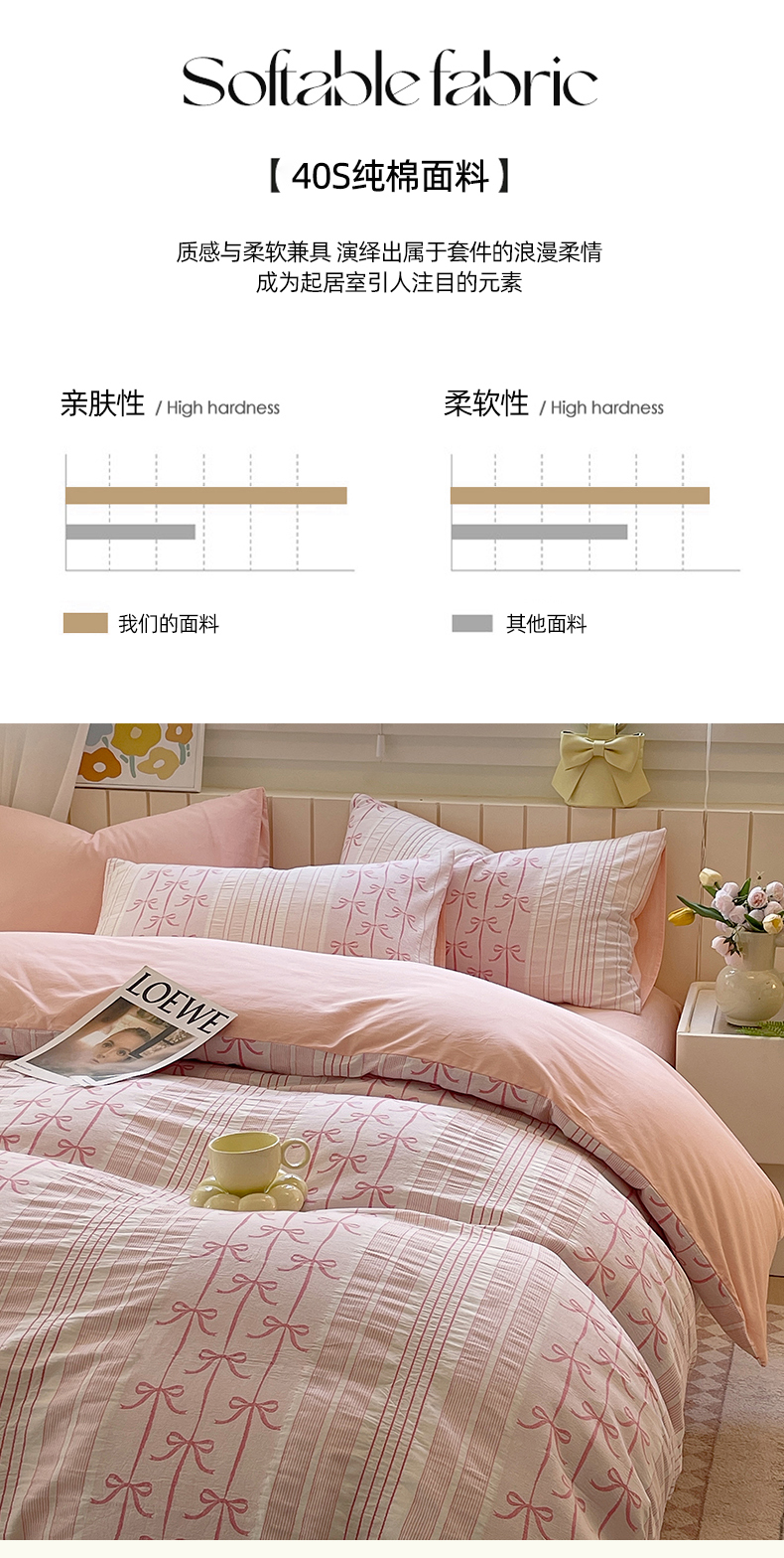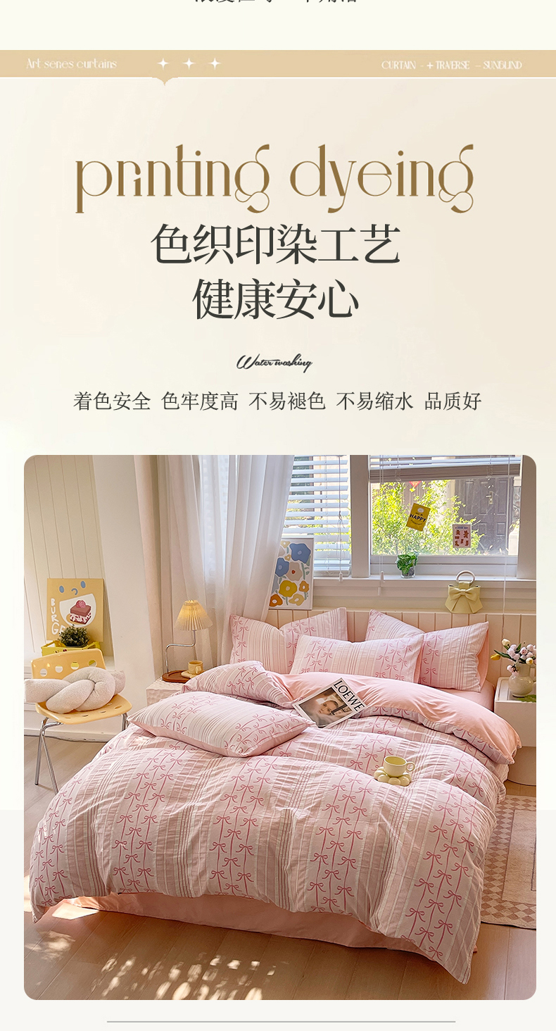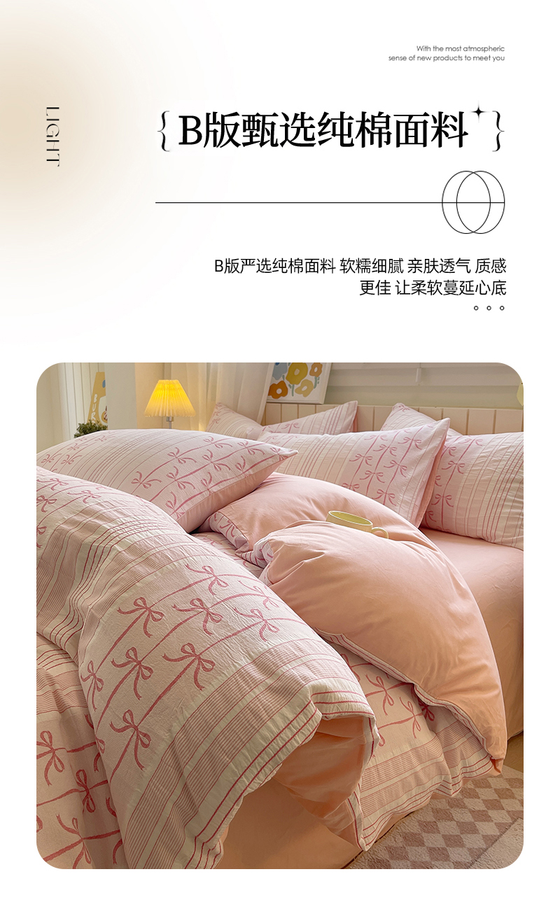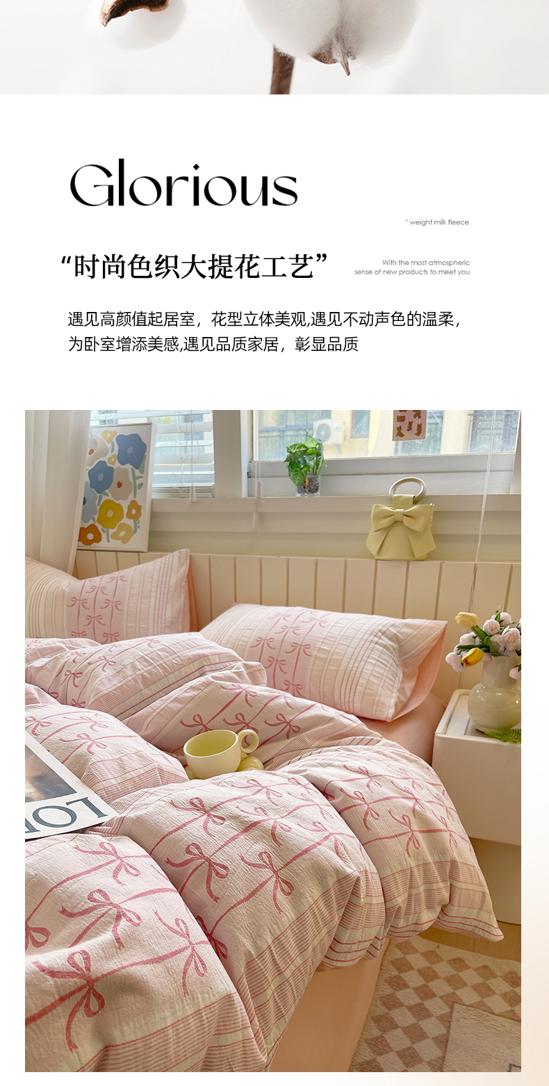 当前位置: 91家纺网 > 商品网购 > 床品套件 > 四件套 > 全棉普通四件套 > 琪格格纺织 2025新款全棉纯棉色织提花小清新四件套 伊芙琳-粉