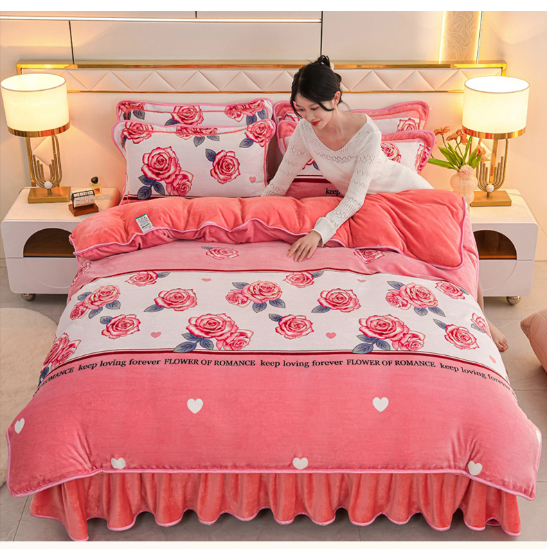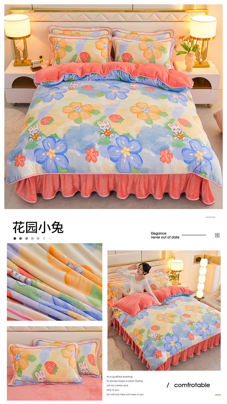 商品名称:眠多宝 2025新款8-9斤高克重牛奶绒四件套法莱绒水晶绒金貂绒抖音快手直播热款 暖暖时光