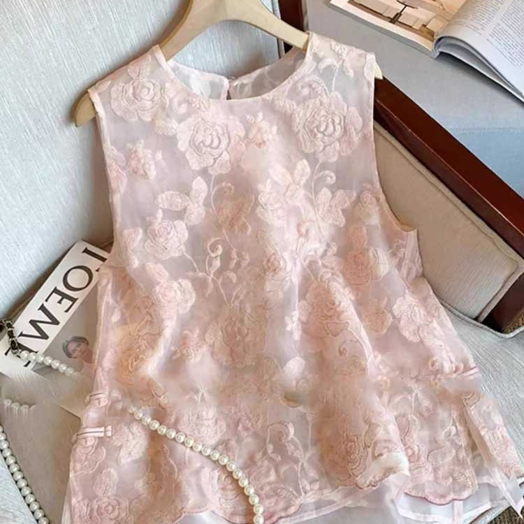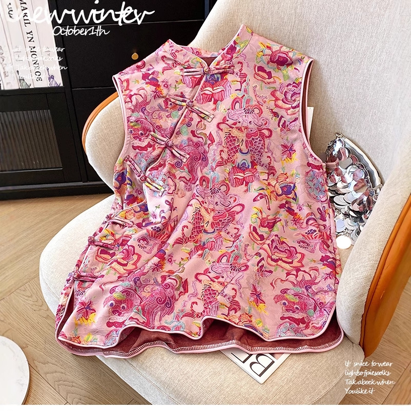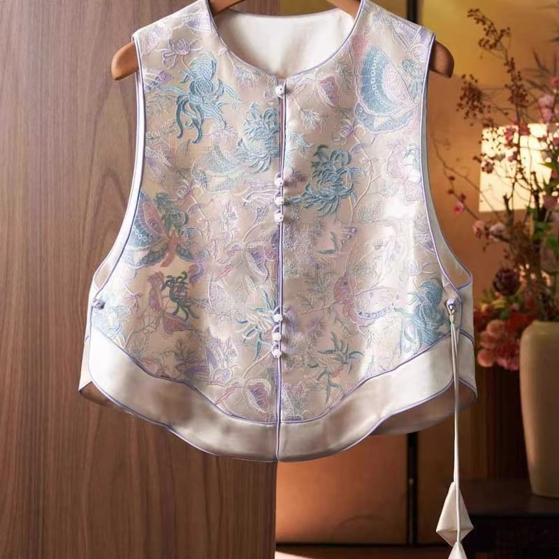 商品名称:洛兰沙家居馆【只代发】【只代发】 2025新款复古织锦缎细纱棉麻拼接马甲背心刺绣中式盘扣上衣 26
