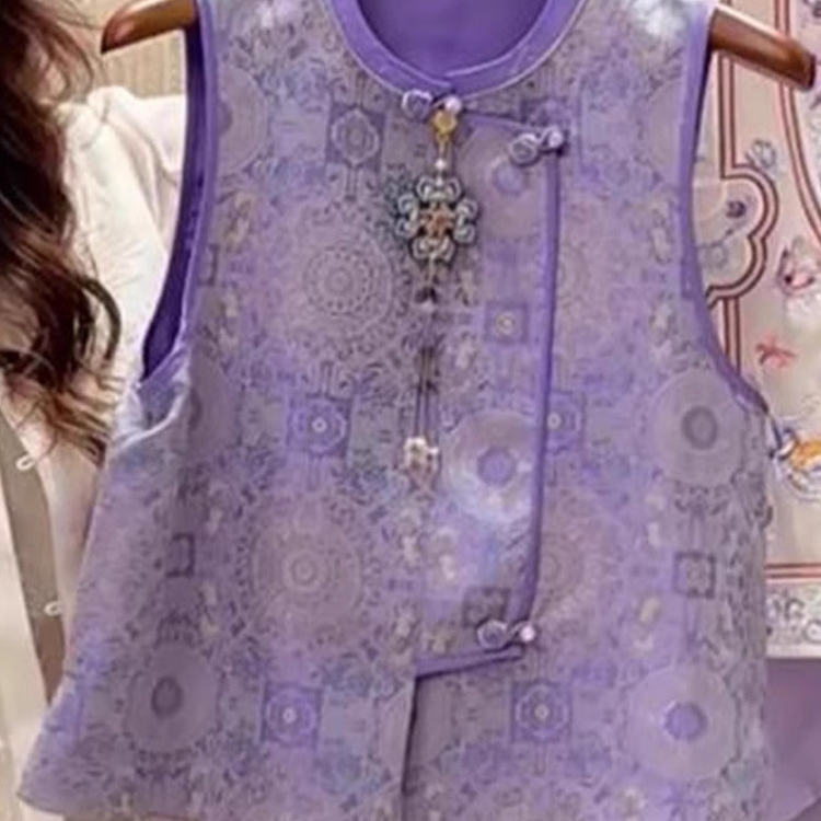 洛兰沙家居馆【只代发】【只代发】 2025新款复古织锦缎细纱棉麻拼接马甲背心刺绣中式盘扣上衣 26