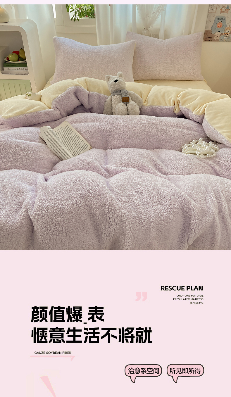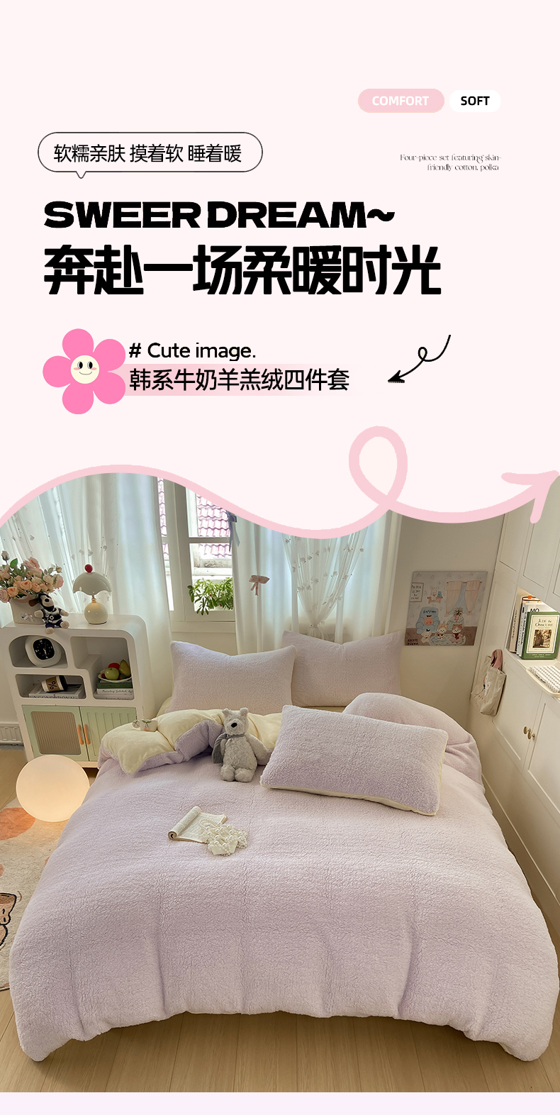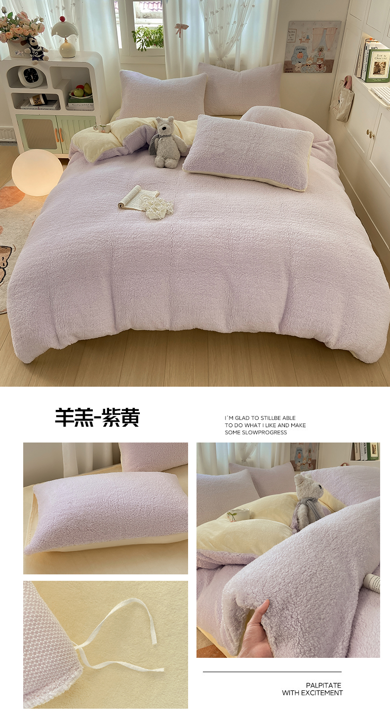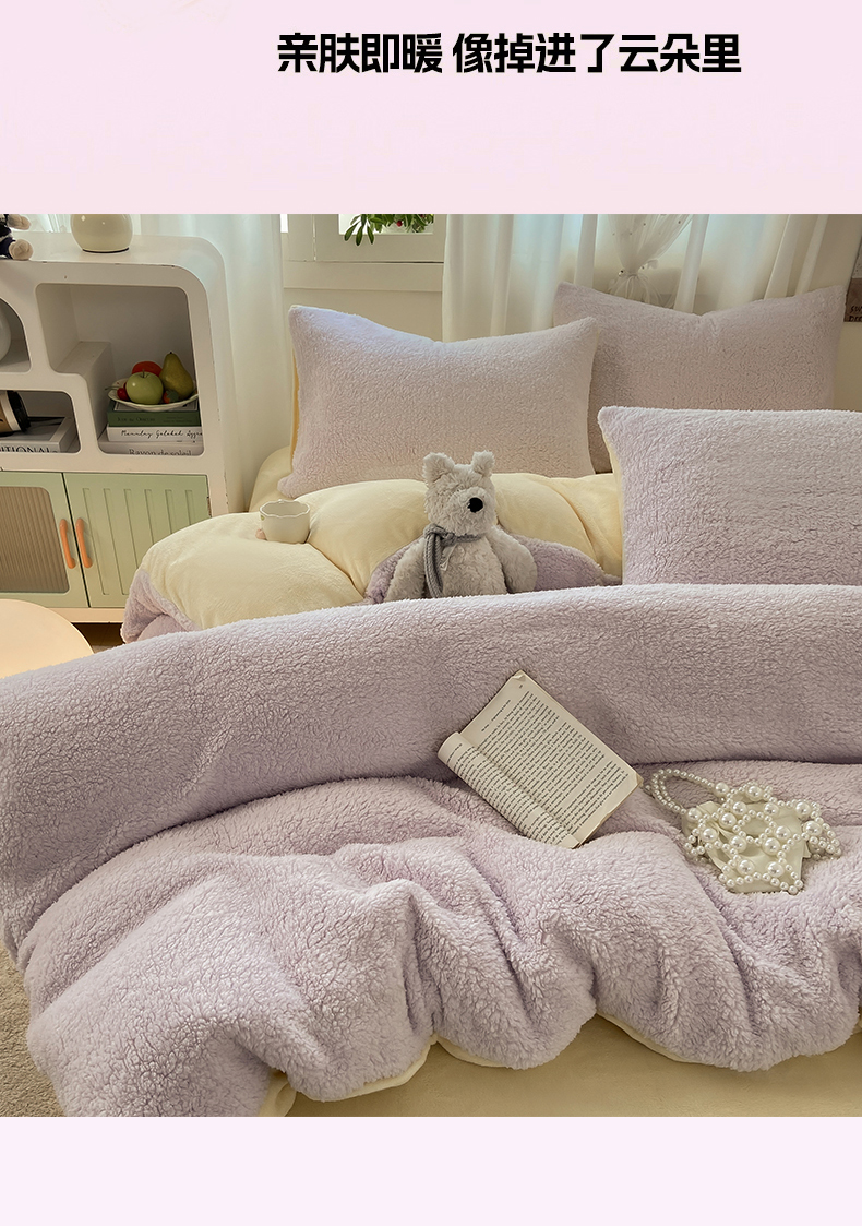当前位置: 91家纺网 > 商品网购 > 床品套件 > 四件套 > 羊羔绒四件套 > 灰鲸 2025新款秋冬韩系牛奶羊羔绒四件套 羊羔-紫黄