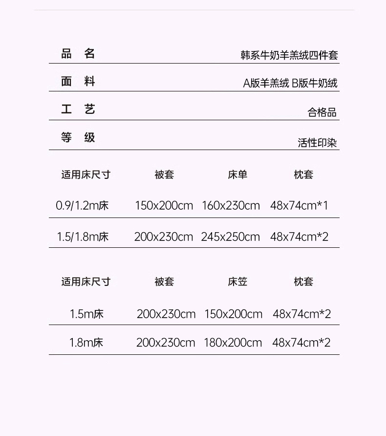 【床笠款】1.8四件套-被套200x230 | ¥95.00 |