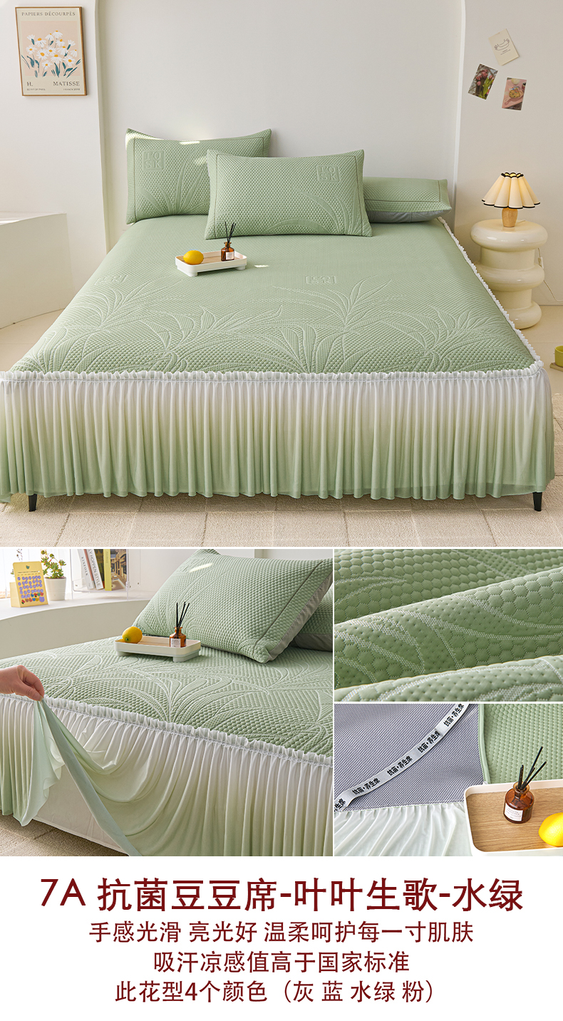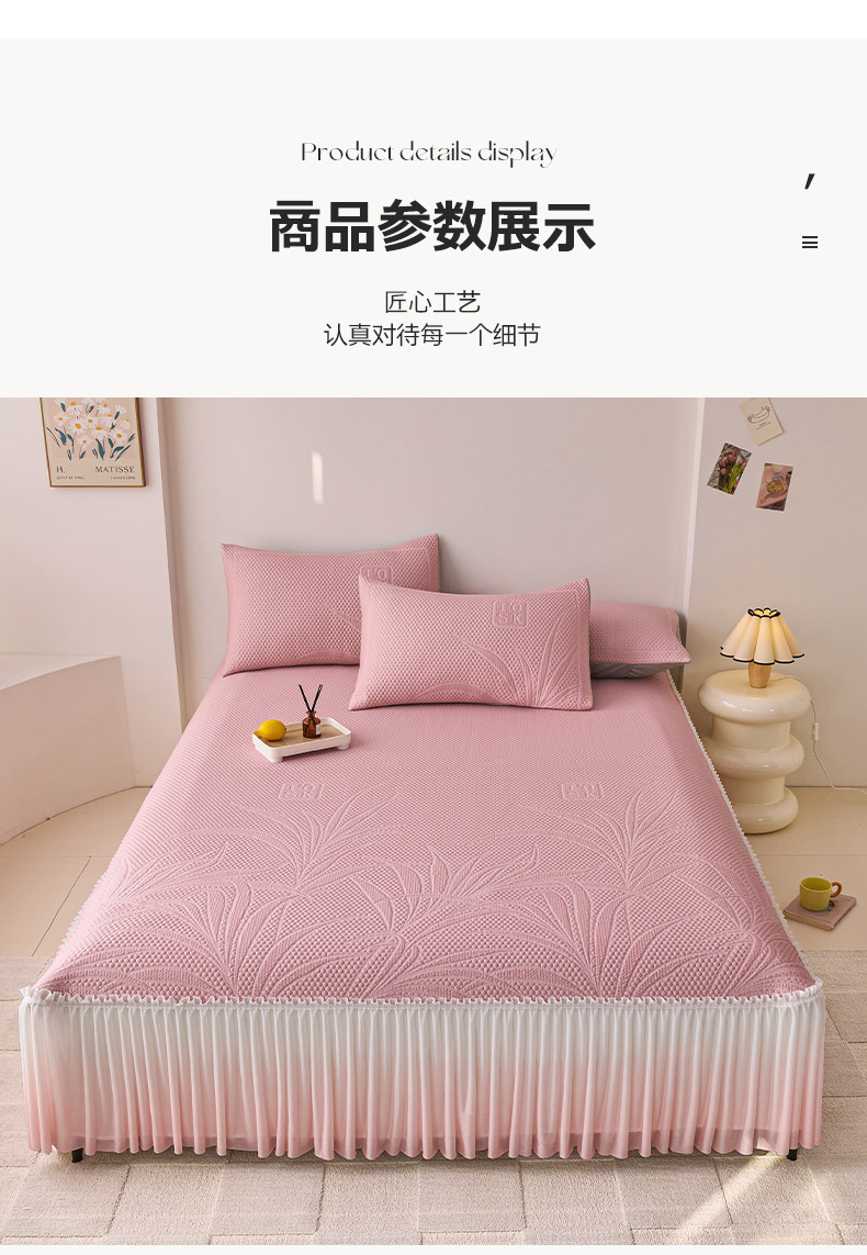 梵克保罗 2025新款3D冰感床裙渐变色凉席-叶叶生歌 叶叶生歌-粉