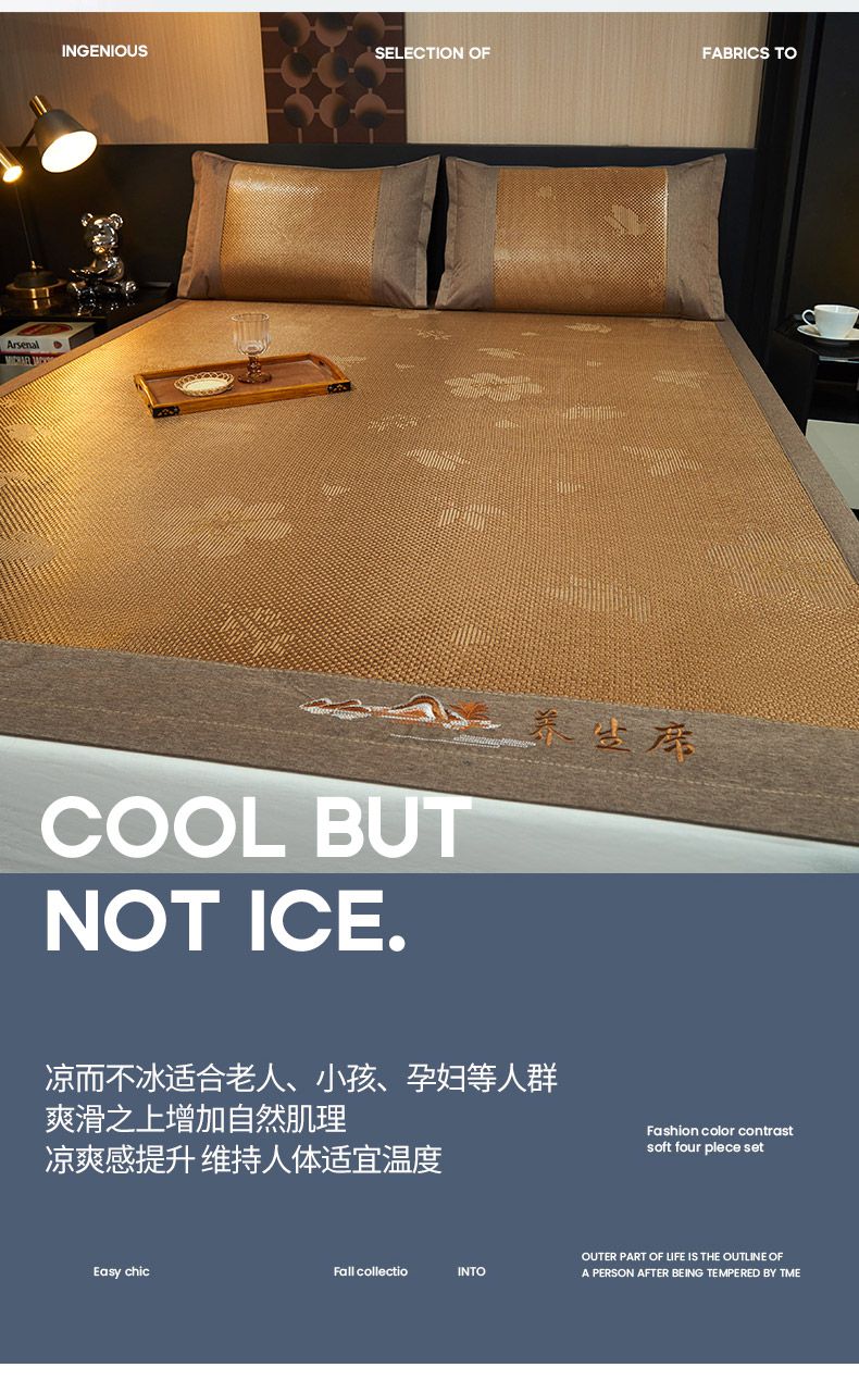 商品名称:梵克保罗 2025新款3D复合提花清凉冰藤席-花语系列 花语-咖