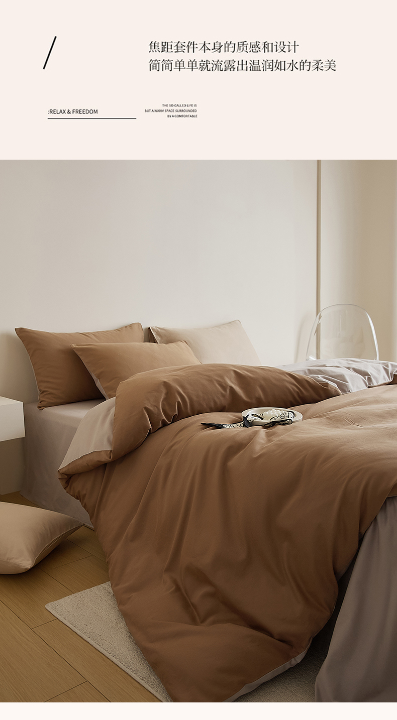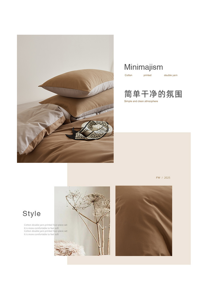 当前位置: 91家纺网 > 商品网购 > 床品套件 > 四件套 > 全棉普通四件套 > 眷恋家纺 2025新款A类全棉贡缎磨毛双拼色四件套 莫百草