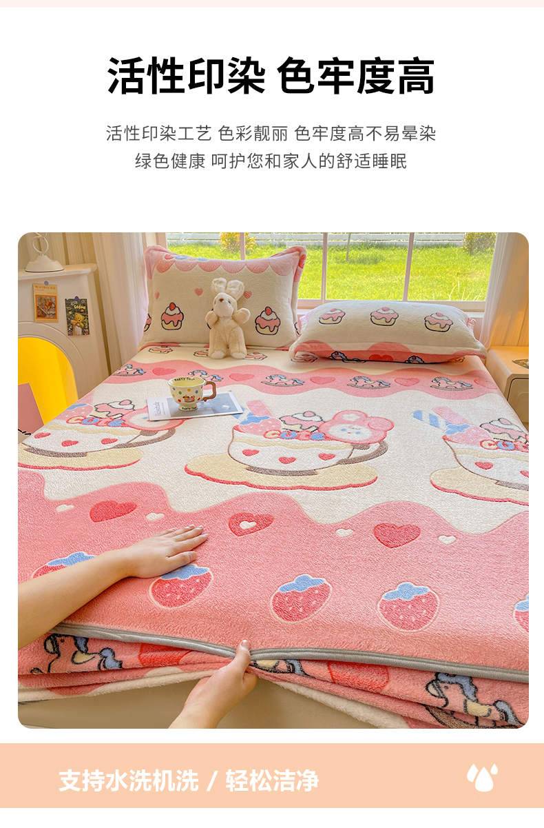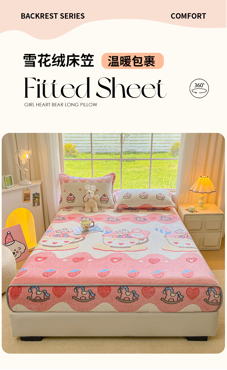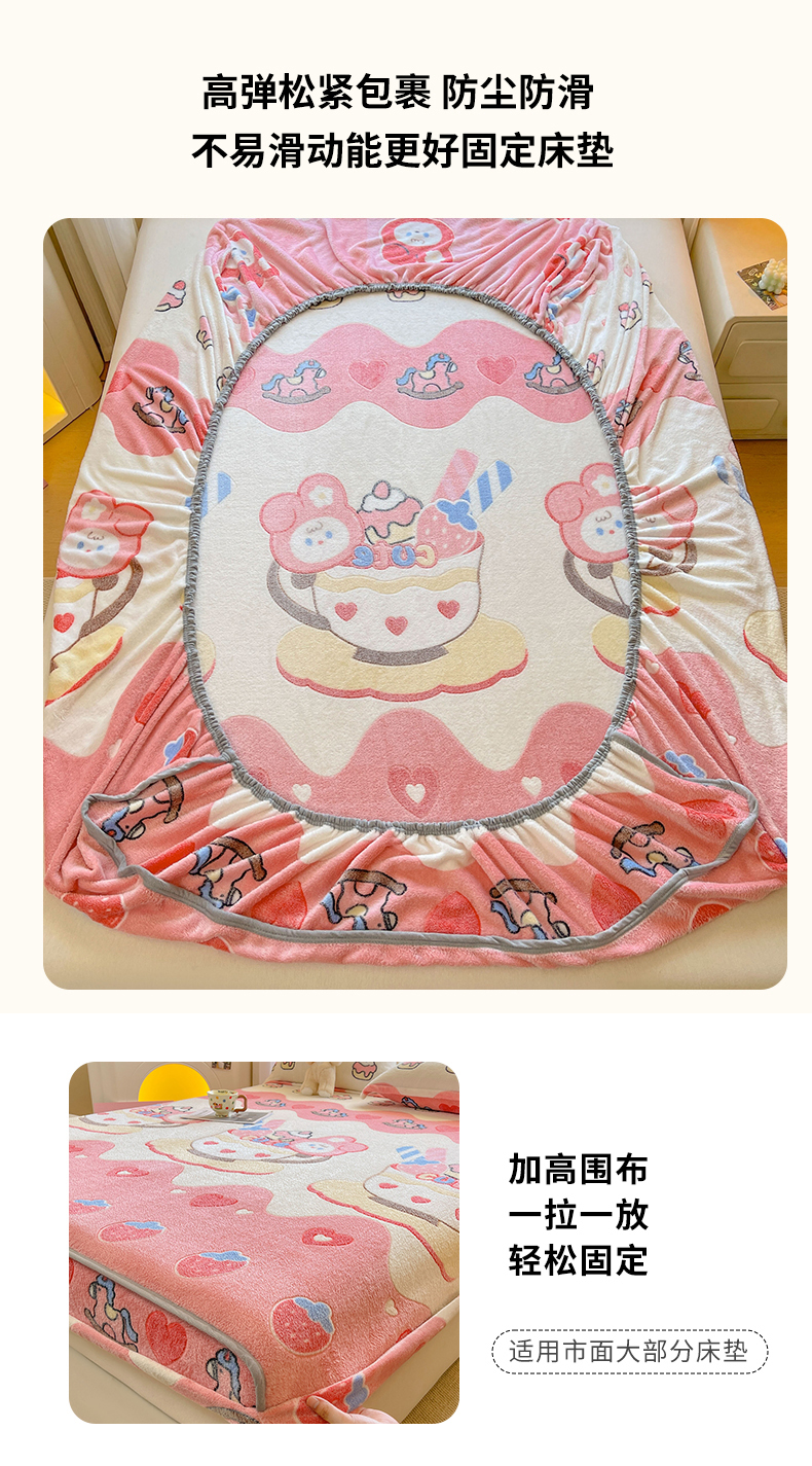 牵梦萦家纺 2025新款雪花绒立体包边床笠 小熊冰激凌