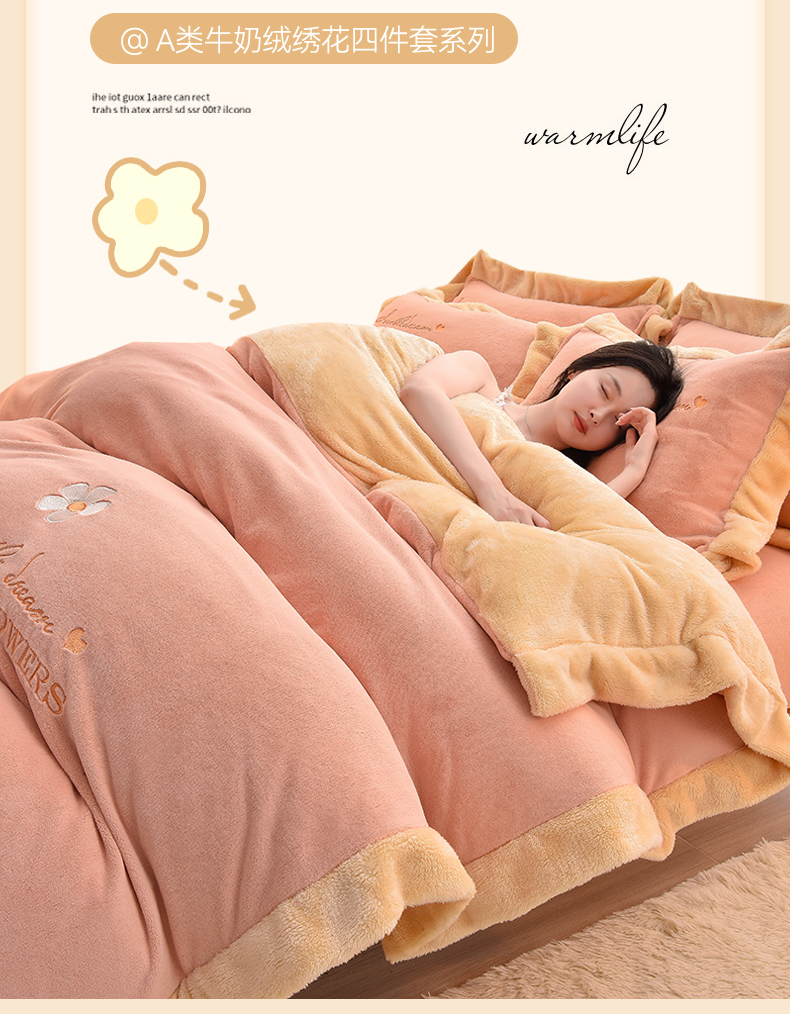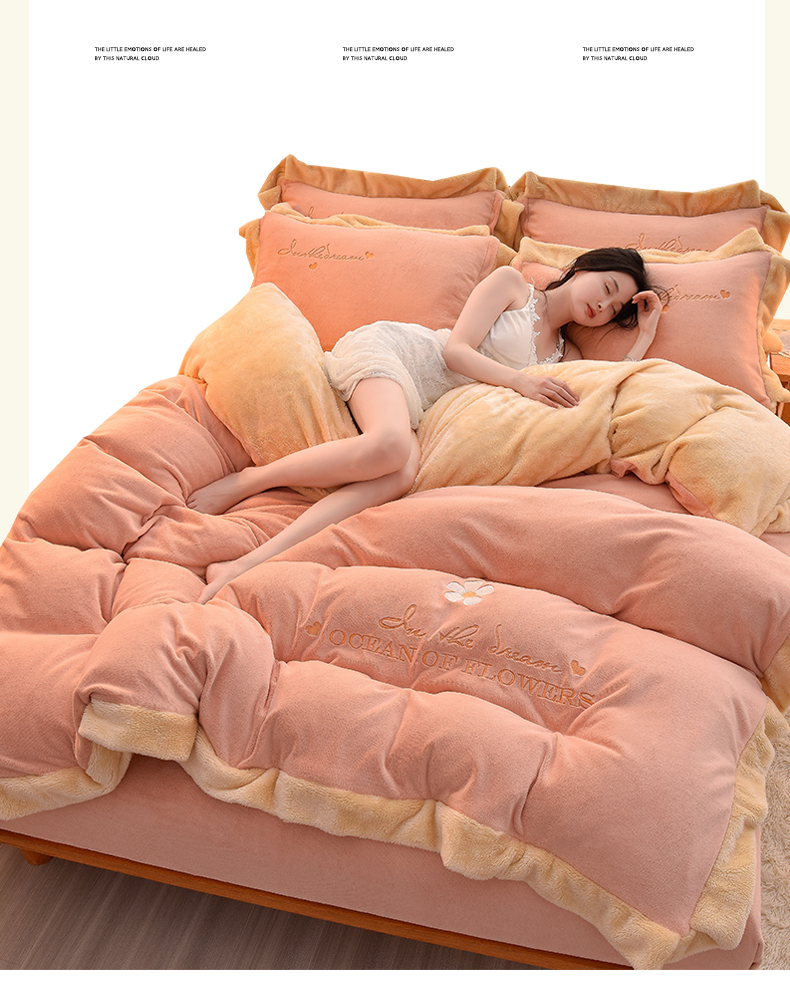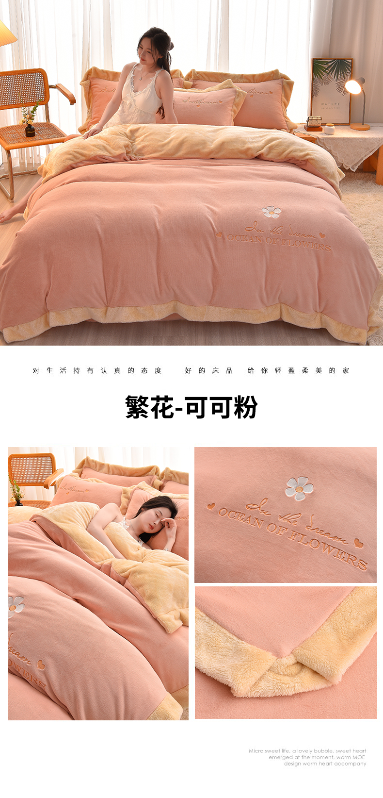 商品名称:笙意 新款牛奶绒刺绣四件套-繁花系列 繁花-可可粉