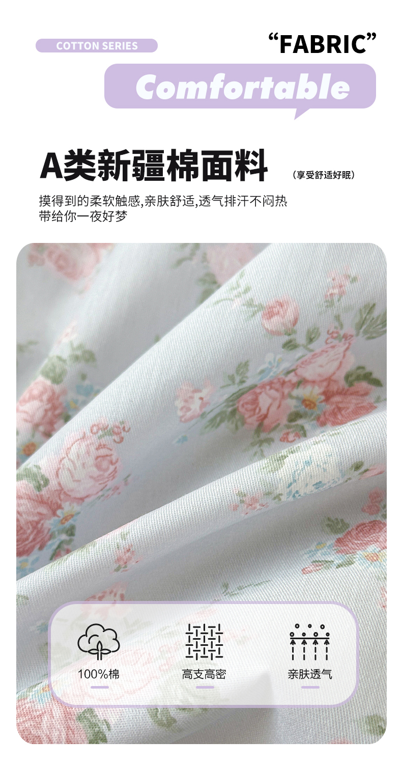 商品名称:拾物记 2025新款A类12868全棉纯棉单床笠床笠单件-提供买家秀和质检报告 泠羽花园