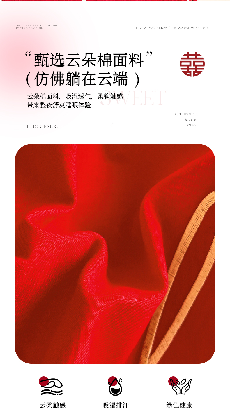 商品名称:(总)艾橙家纺 2025新款大红云朵棉刺绣婚庆系列四件套