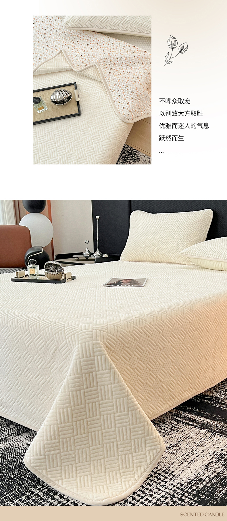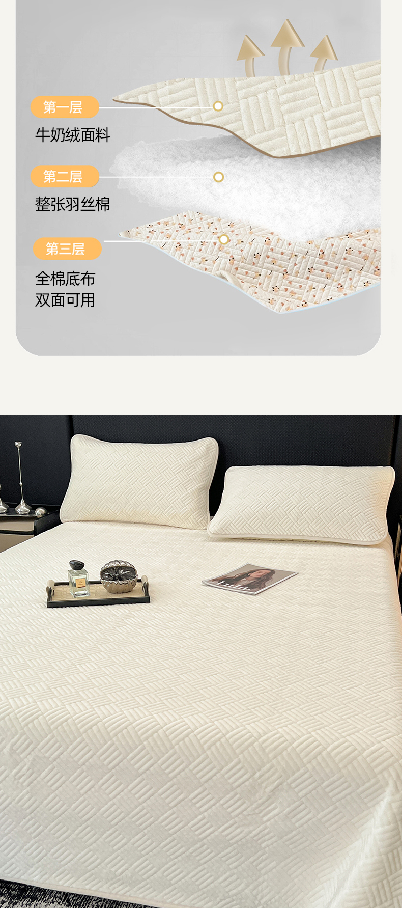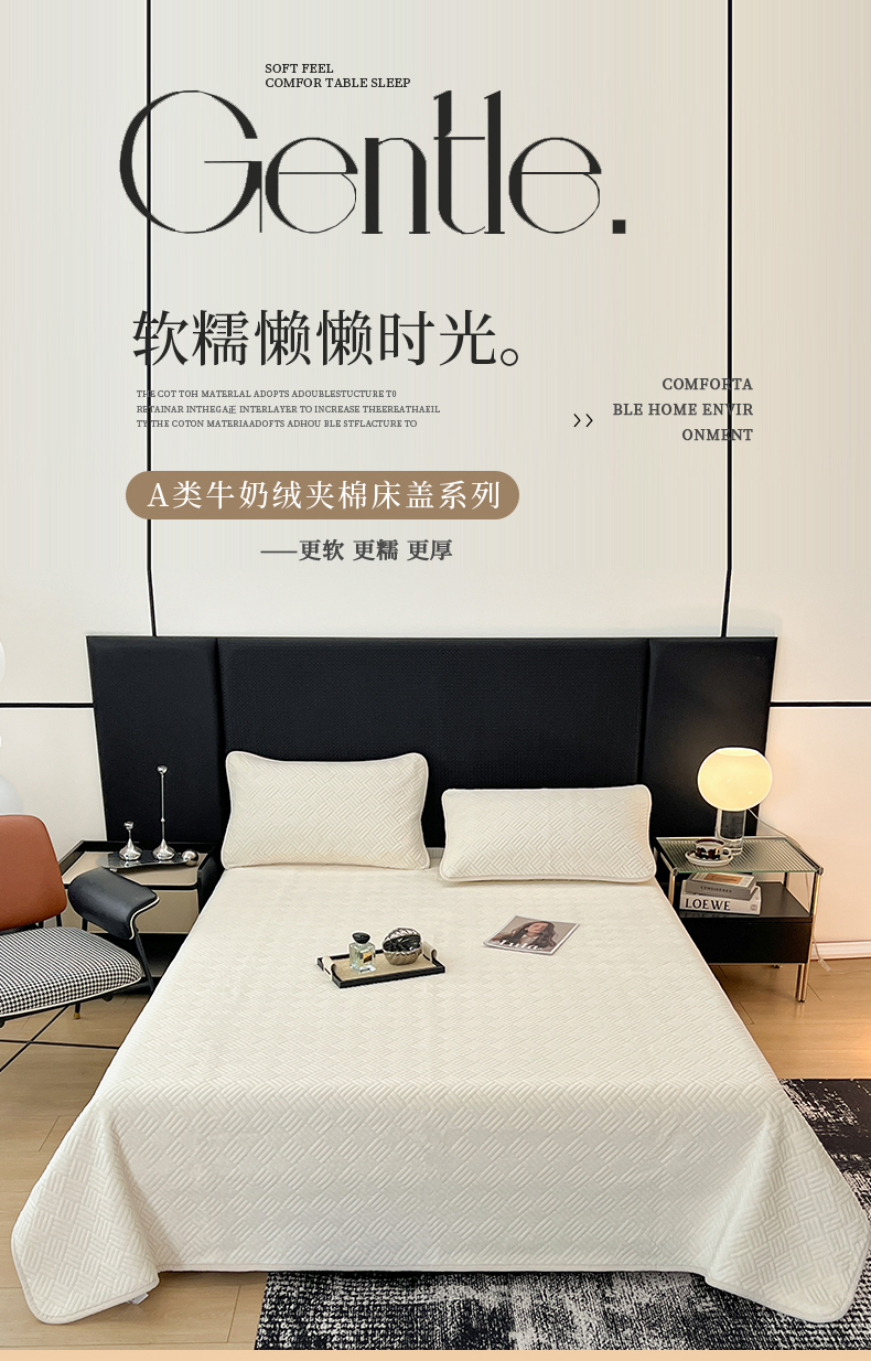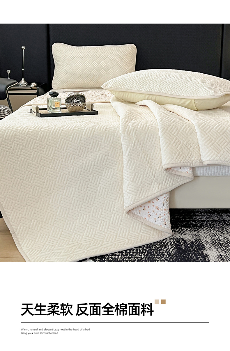 • 91家纺网 家纺一手货源 找家纺 茉夕家纺 2025新款云朵系列棉+牛奶绒单床盖 床盖单件 云朵-月光白