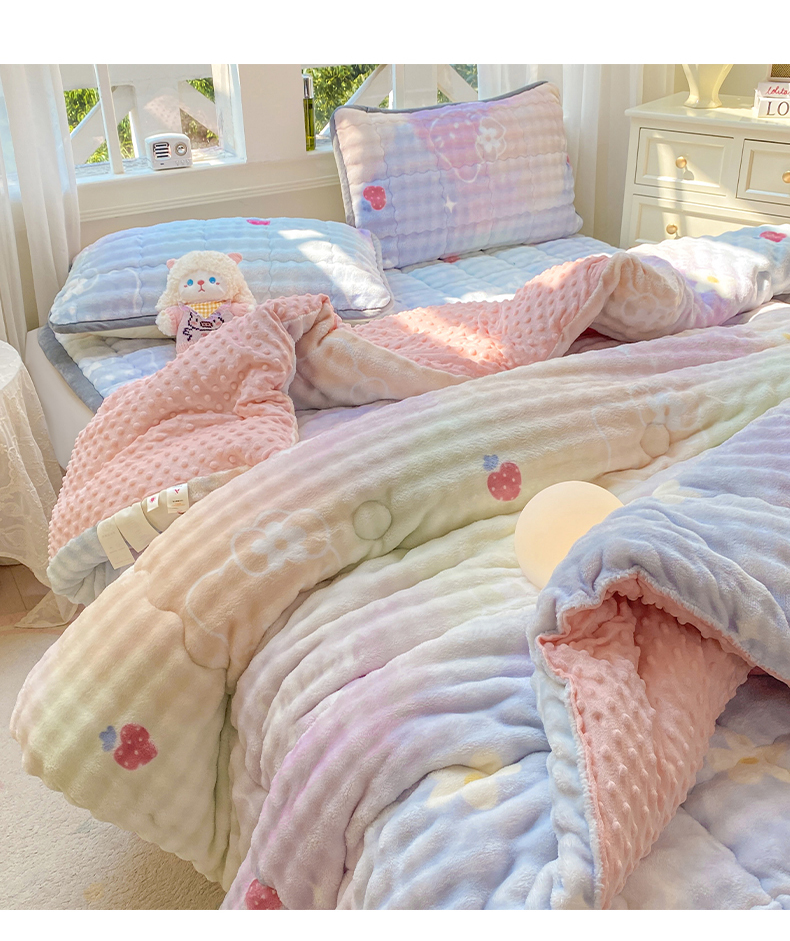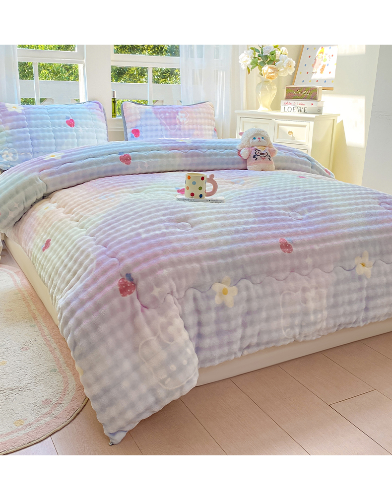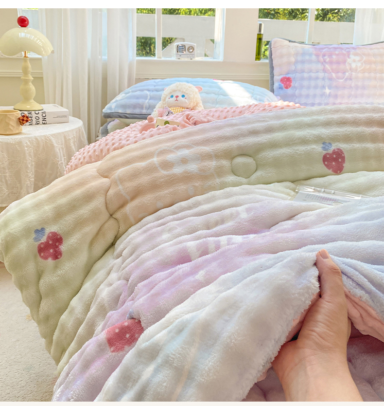 • 91家纺网 家纺一手货源 找家纺 眠势力 2025新款兔兔绒豆豆被子冬被芯加绒兔毛绒加厚保暖被褥 草莓KT【兔兔绒豆豆被】