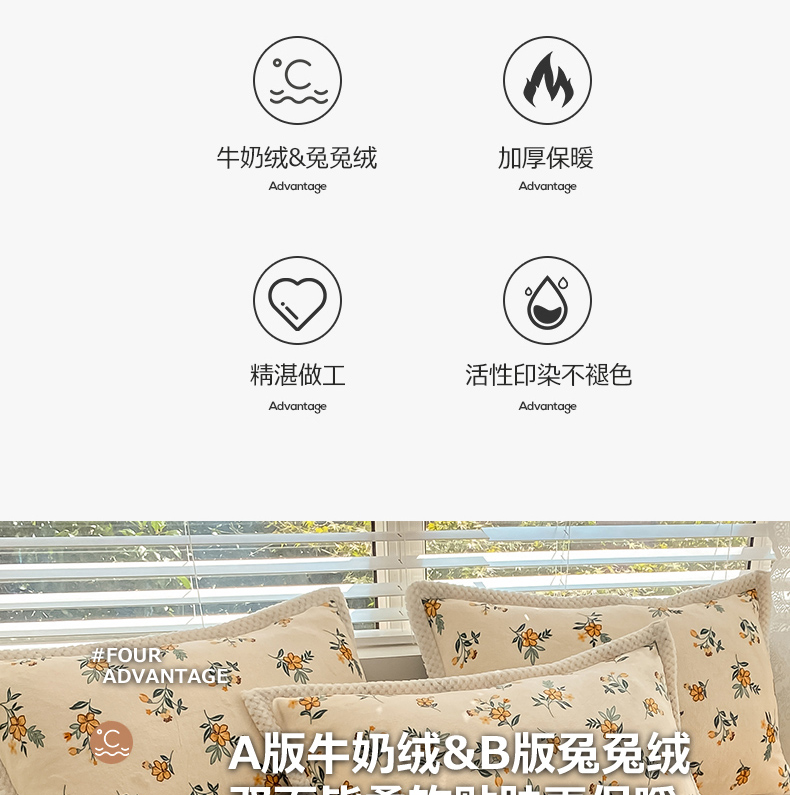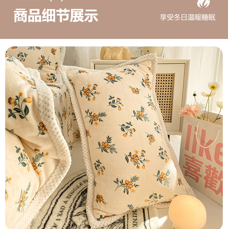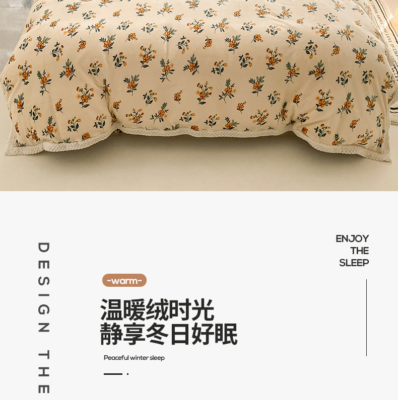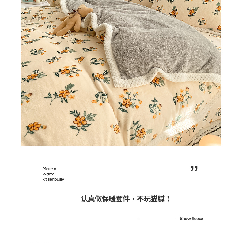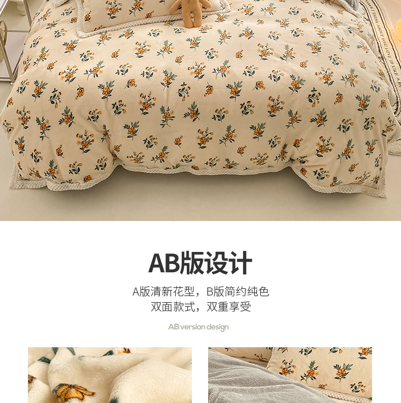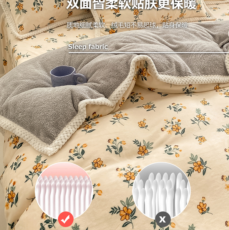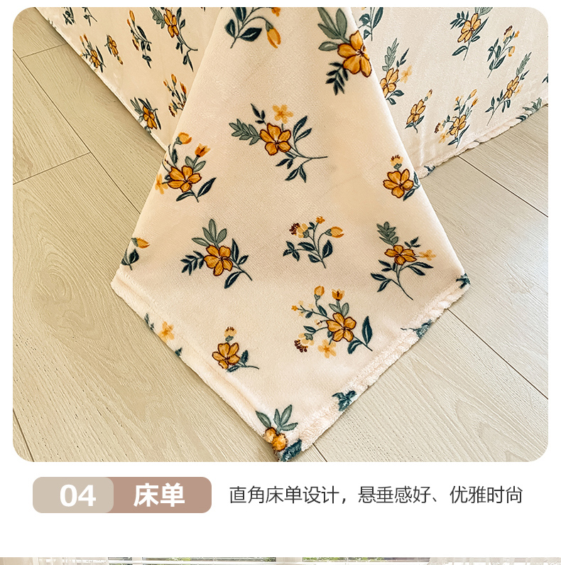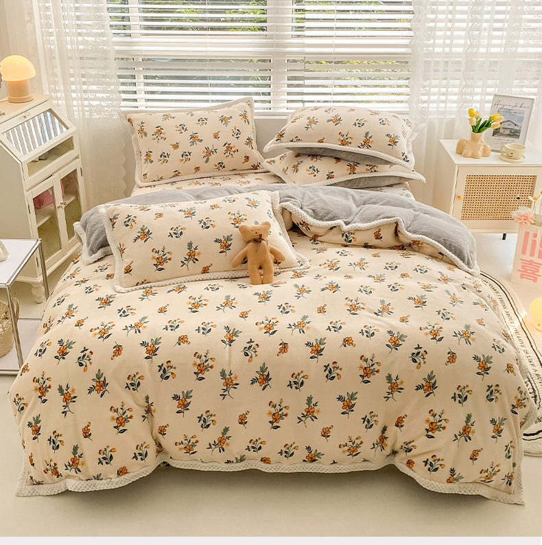 商品名称:琪格格纺织 2025新款A牛奶绒B兔兔绒保暖印花四件套 大包边绒小黄花