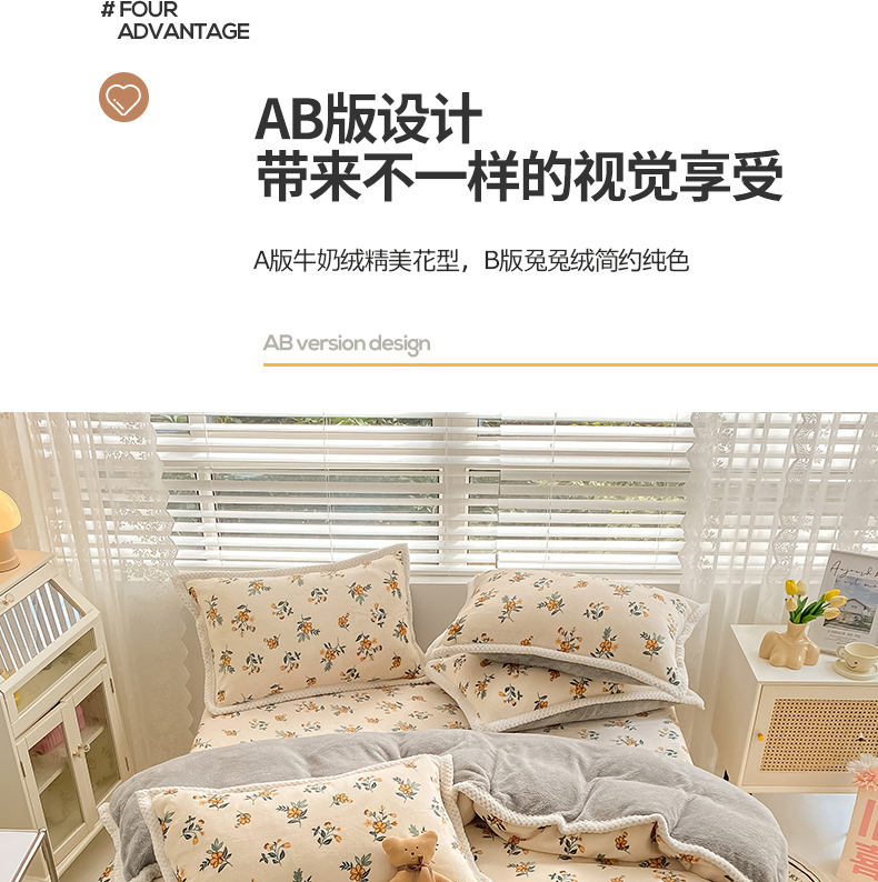 琪格格纺织 2025新款A牛奶绒B兔兔绒保暖印花四件套 大包边绒小黄花