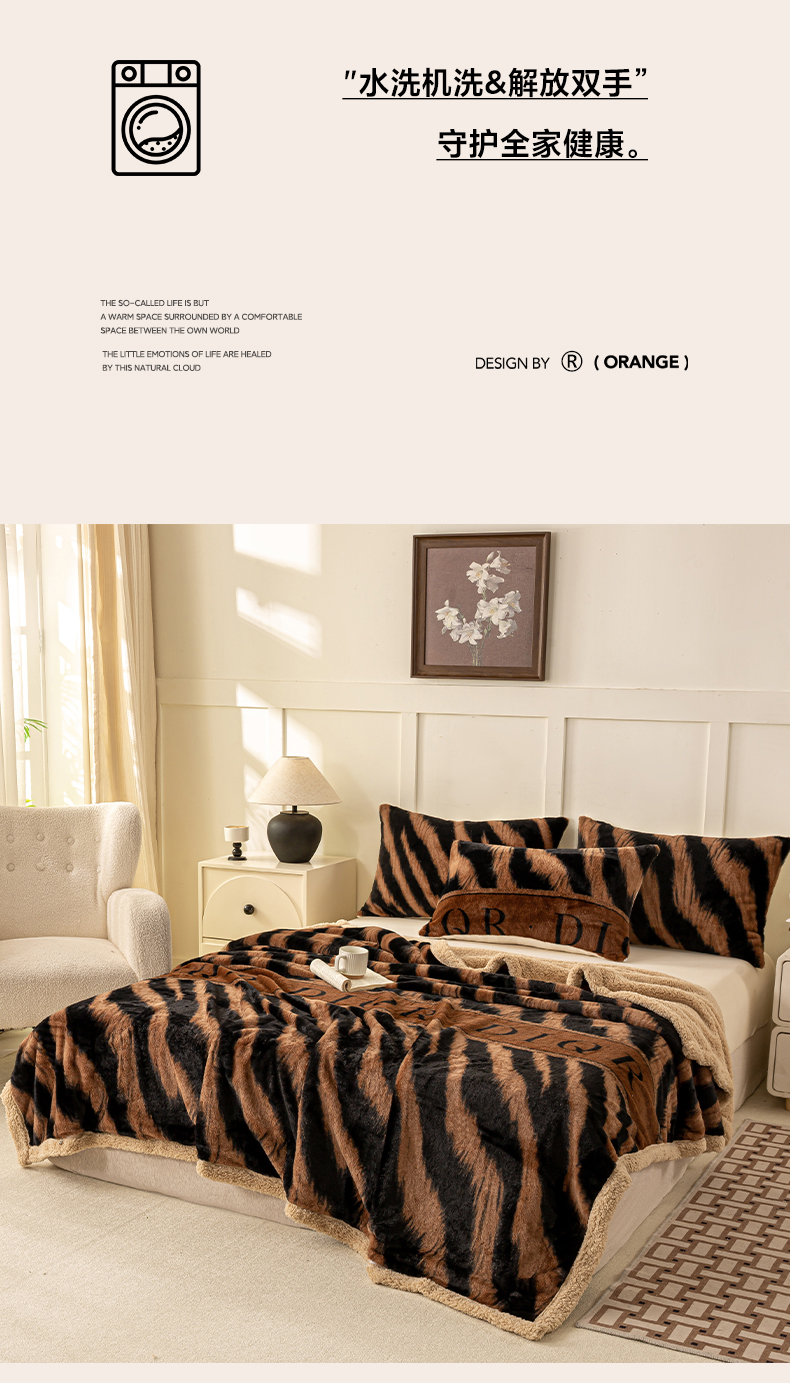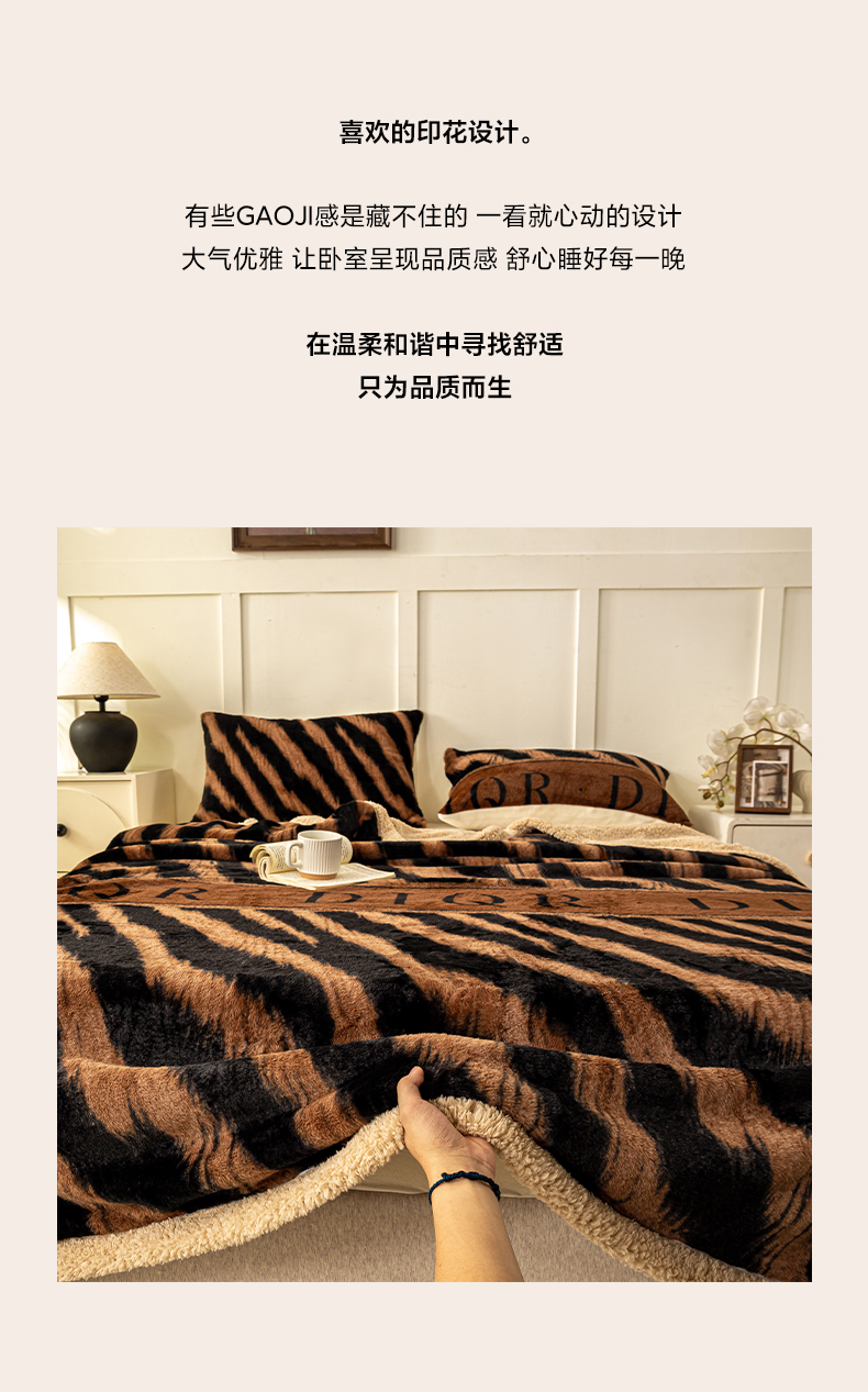 (总)眠势力 2025新款兔毛绒毛毯冬季加绒加厚盖毯兔兔绒保暖毯子带拉链-美拉德系列