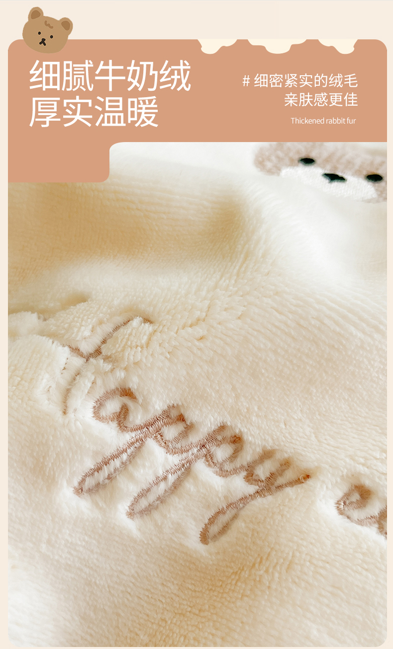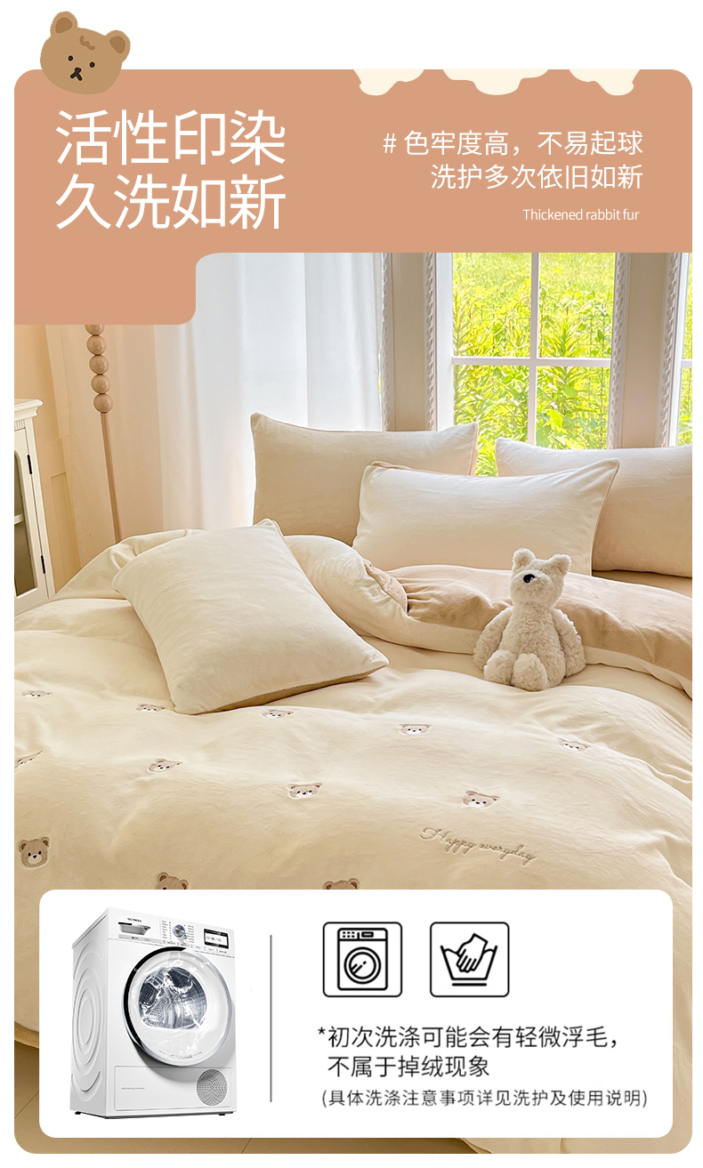 商品名称:云棉坊 2025新款高克重牛奶绒四件套-满绣系列 小熊-奶白咖