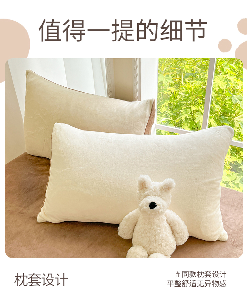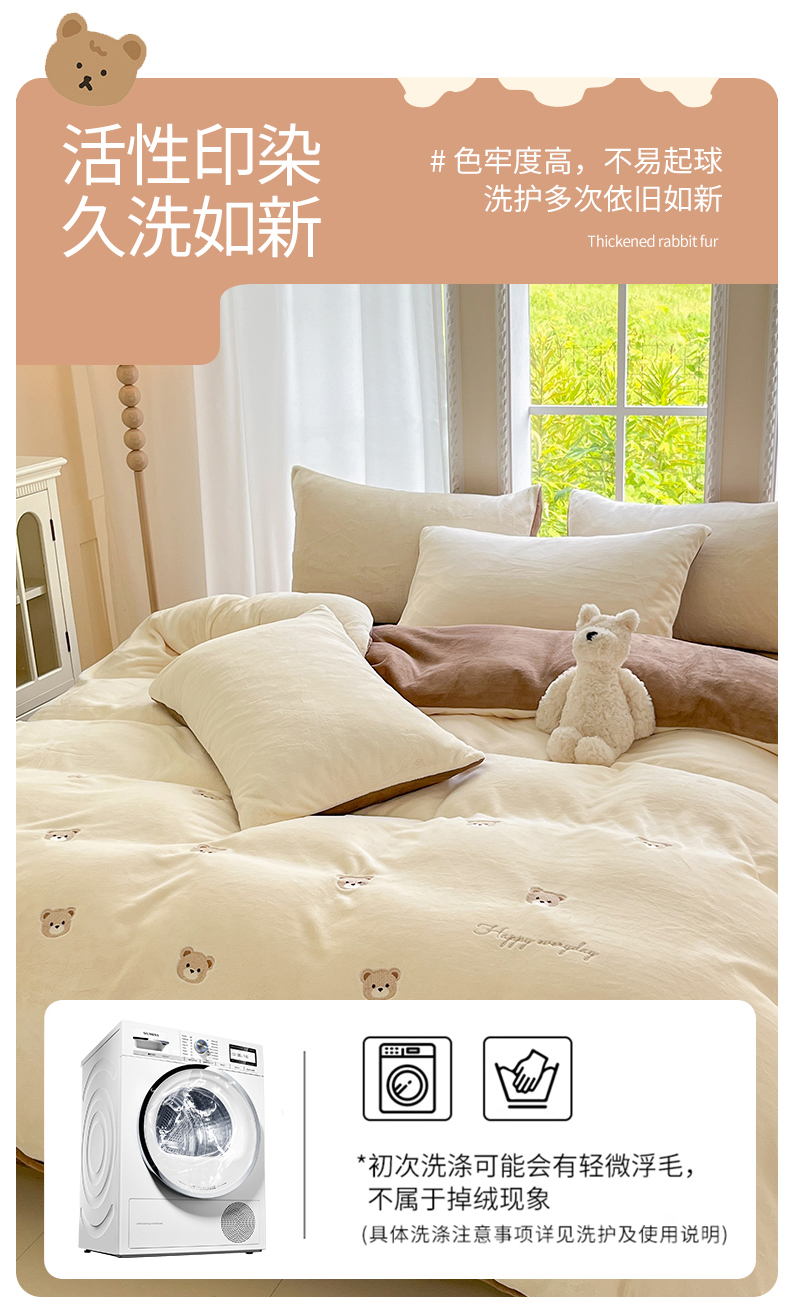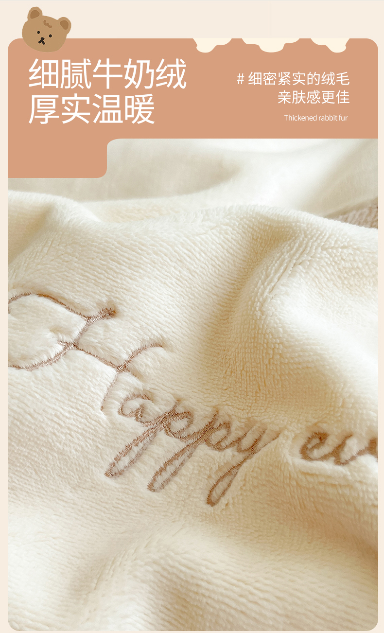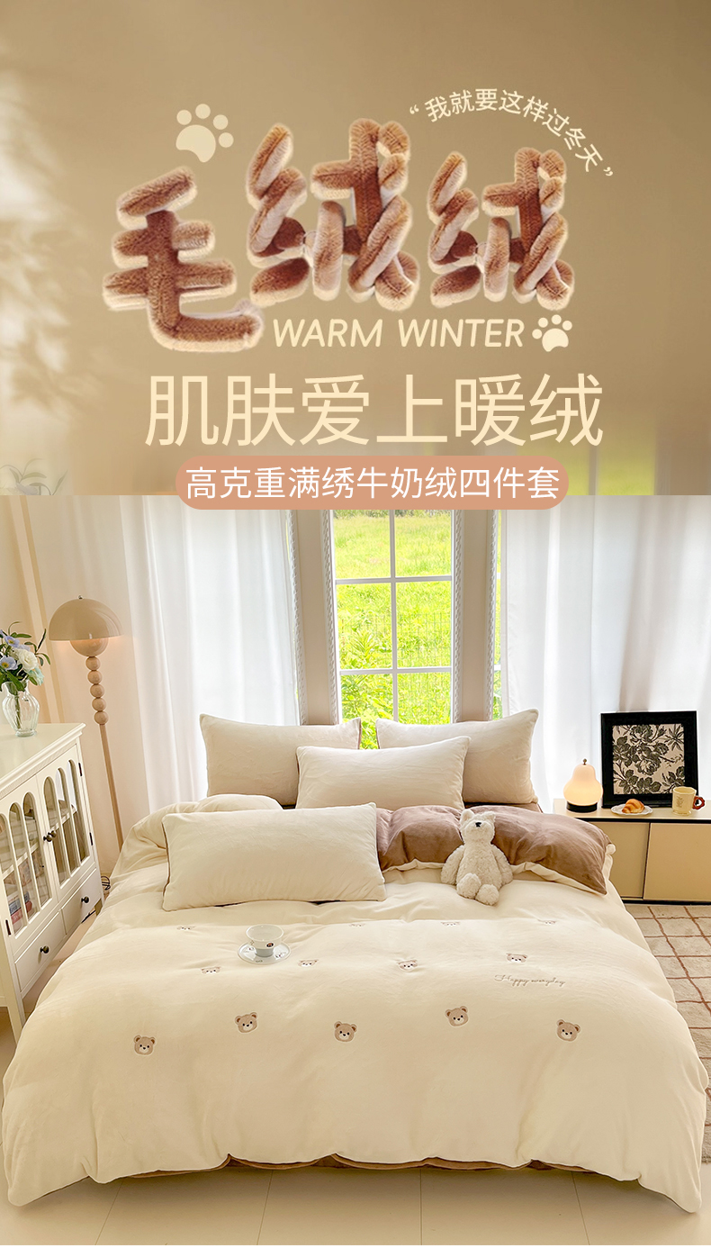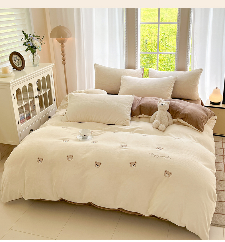 云棉坊 2025新款高克重牛奶绒四件套-满绣系列 小熊-奶白棕