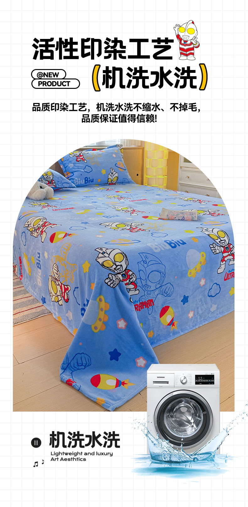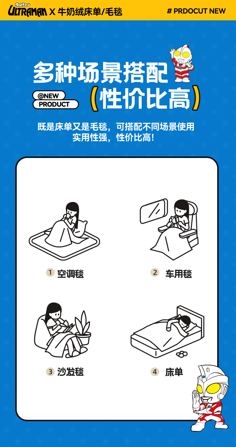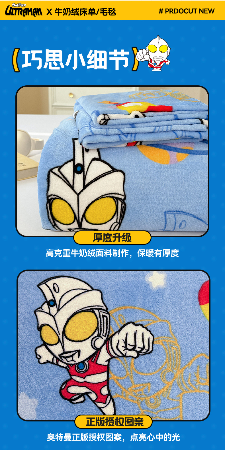 • 91家纺网 家纺一手货源 找家纺 名兮家居 2025新款经典奥特曼-三丽鸥高克重牛奶绒床单 闪电艾斯